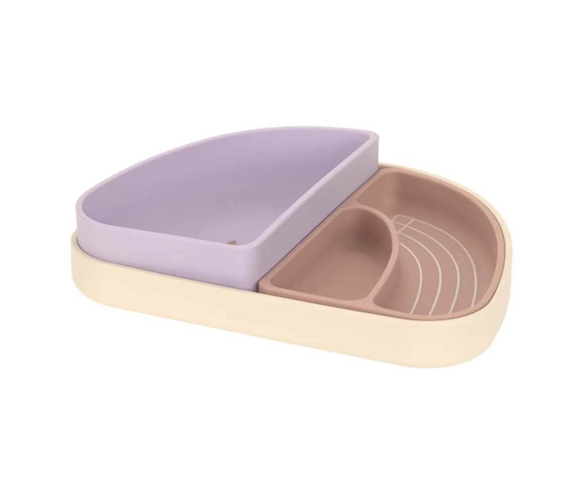 Set de 3 platos de silicona en forma de arcoíris de LÄSSIG, se pueden dividir en 2 cuencos y un plato de forma individual. Fácil de apilar y perfectos para que los peques coman de forma autónoma.