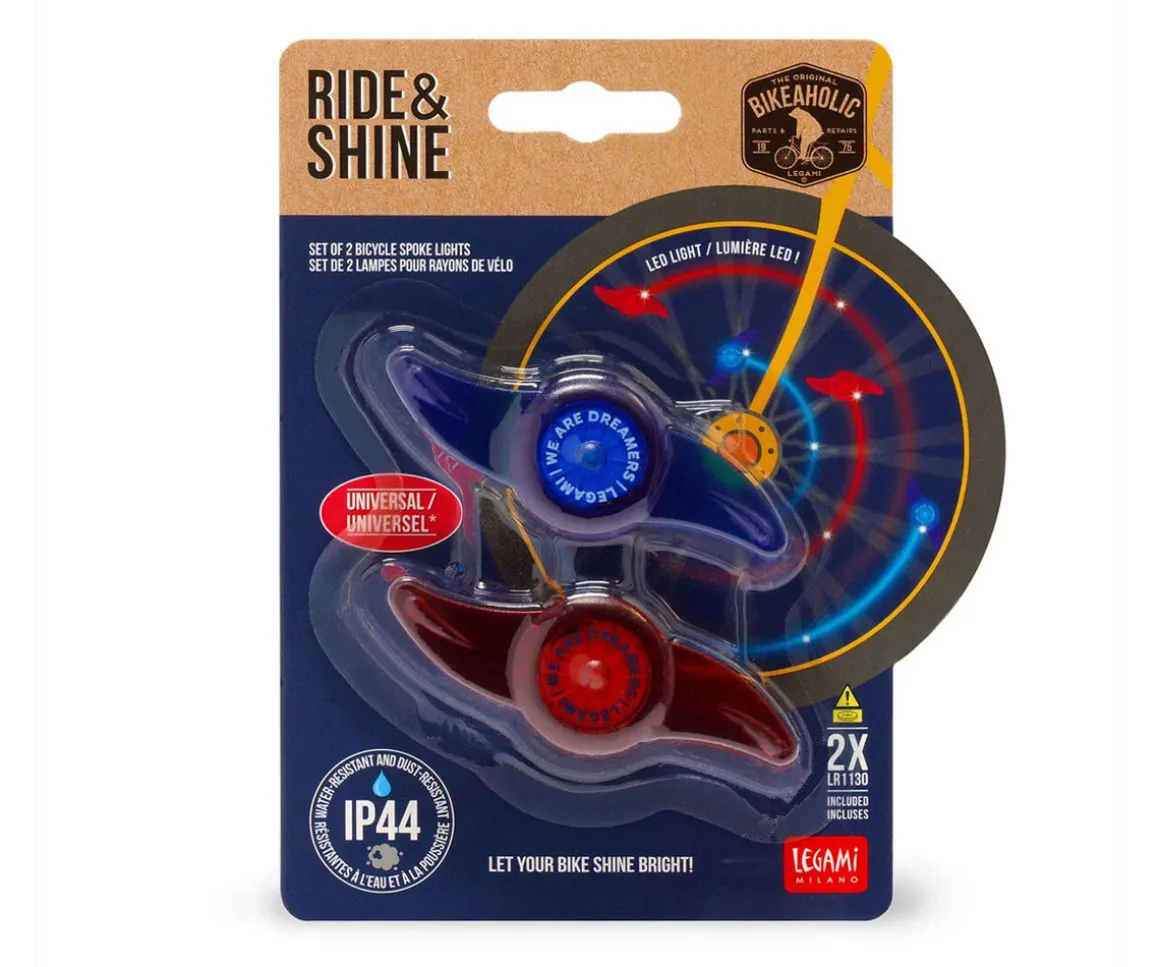 Dale un toque mágico a tu bici con el set de 2 luces para radios Space de Legami. Fáciles de colocar, seguras y llenas de brillo, ¡cada pedaleo te llevará a un mundo de fantasía!