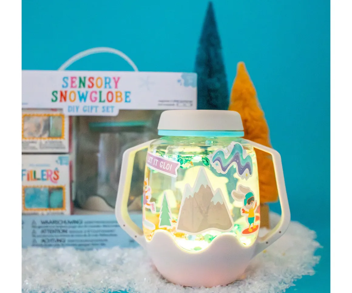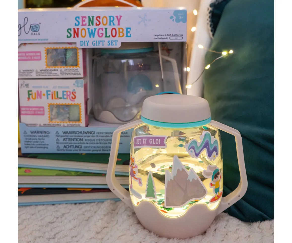 El DIY Sensory Snowglobe Gift Set de Glo Pals es el pack perfecto para disfrutar de una actividad creativa, mágica y llena de calma durante las fiestas. Incluye todo lo necesario para que los peques diseñen su propia bola de nieve sensorial: solo hay que añadir agua, ver cómo flotan los Fun Fillers y decorar el exterior con las pegatinas reutilizables de invierno.