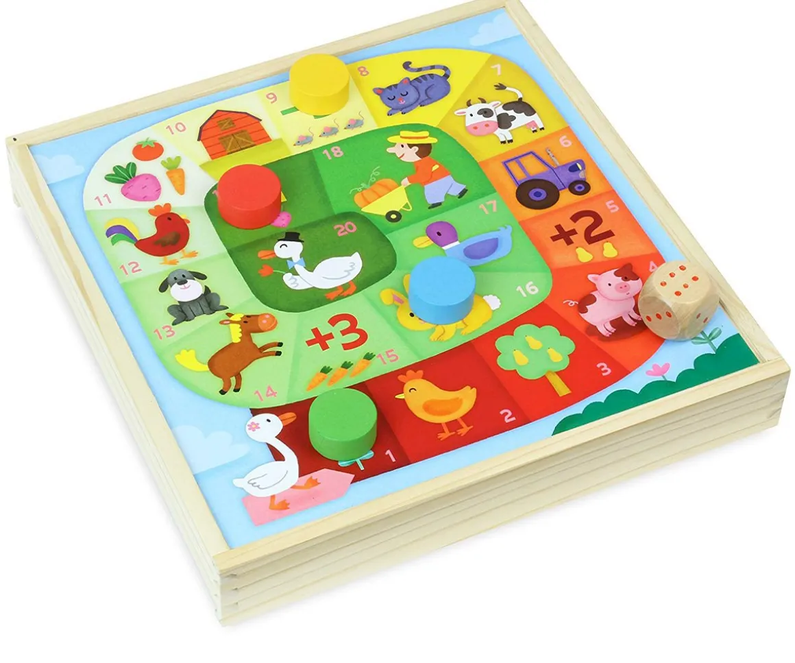 - Contiene un puzzle de 16 piezas, un juego de pesca magnética, un juego de pista y un juego de tejos