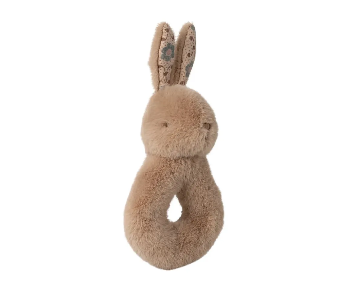 La adorable cajita Maileg esta formada por una suave muselina con estampado de flores y un conejito sonajero muy fácil de manipular y agarrar por las manos más pequeñas.Viene en una caja perfecta para regalar.