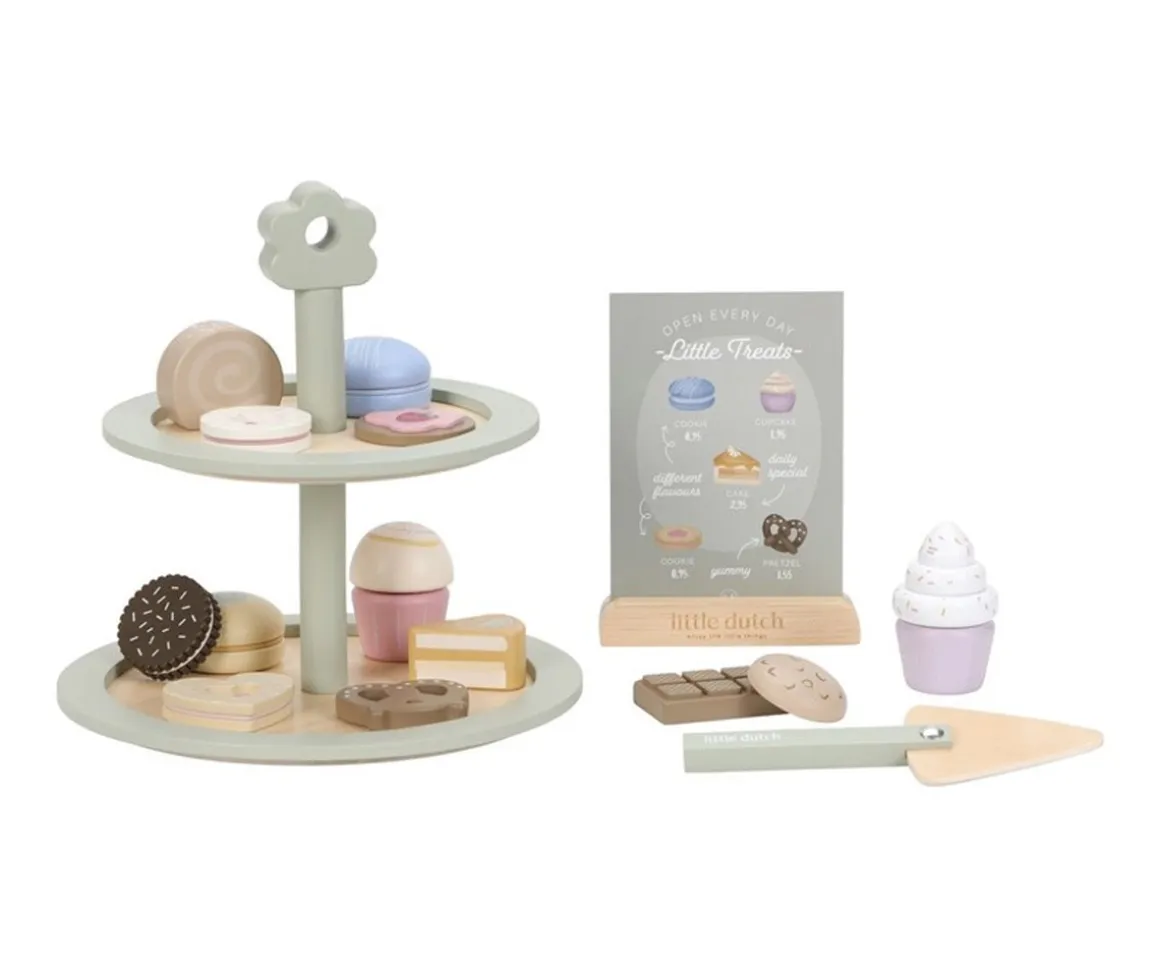 Con el encantador Soporte para Pasteles de madera FSC de Little Dutch, los peques pueden organizar su propia merienda o fiesta de té al más puro estilo tradicional. Este soporte de tres niveles incluye dulces de juguete irresistibles: muffins, galletas y macarons de colores listos para servir.