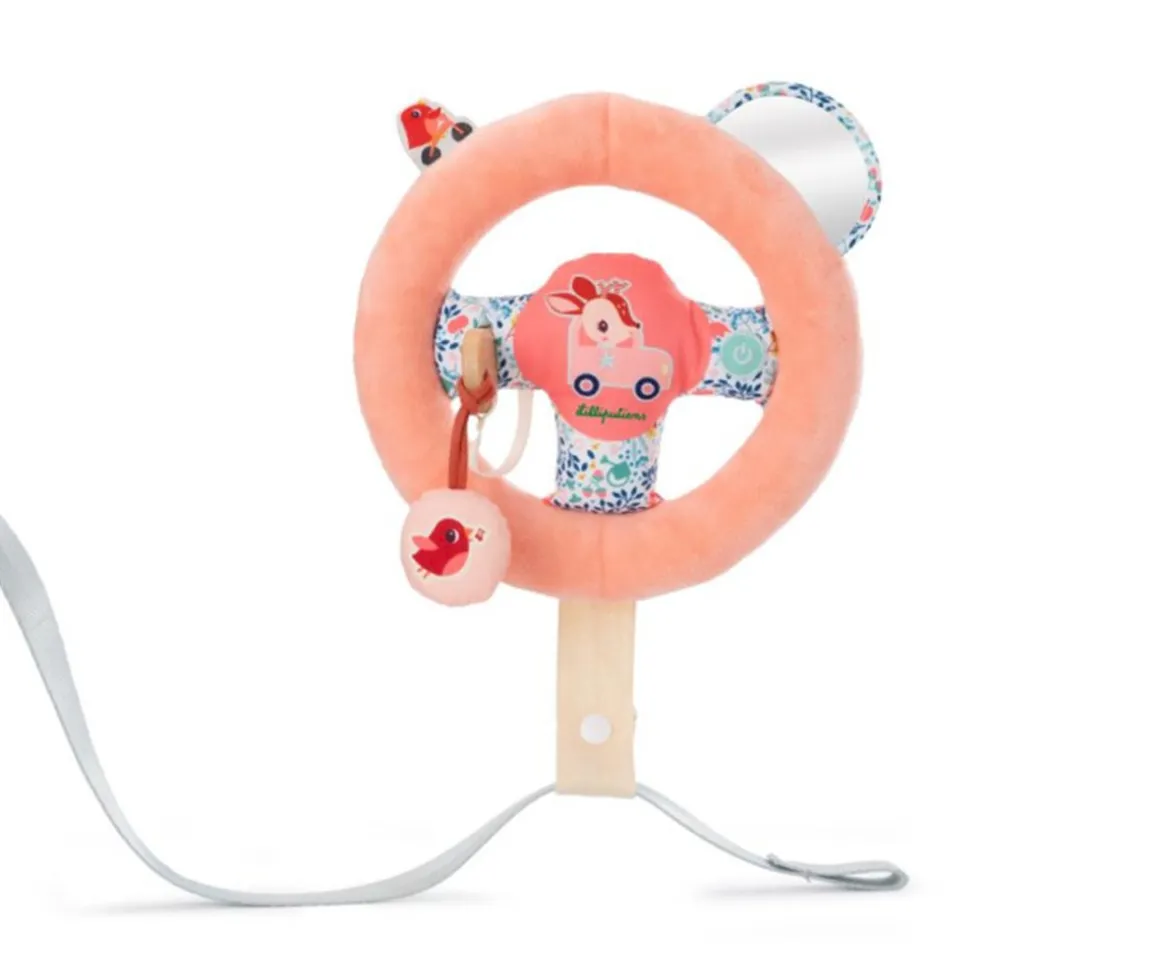Este volante extraíble que se fija al cinturón del coche es perfecto para reproducir las acciones de los mayores, estimulando al mismo tiempo la imaginación del niño.