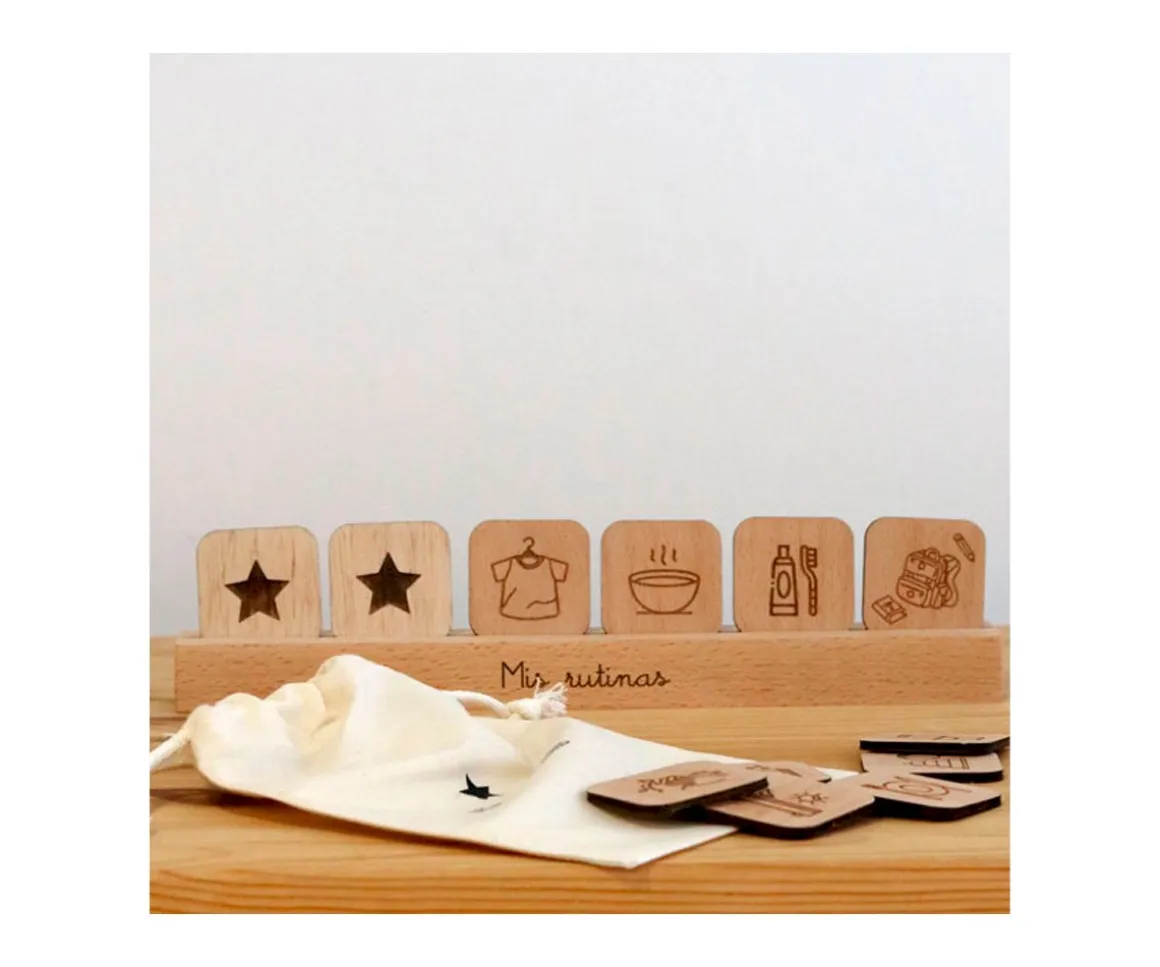 Esta tabla de rutinas es perfecta para motivar a los pequeños de la casa para que consigan sus objetivos. Puedes marcar las tareas que debes cumplir y el orden en el que deben hacerlo, colocándolas en la base de madera.
