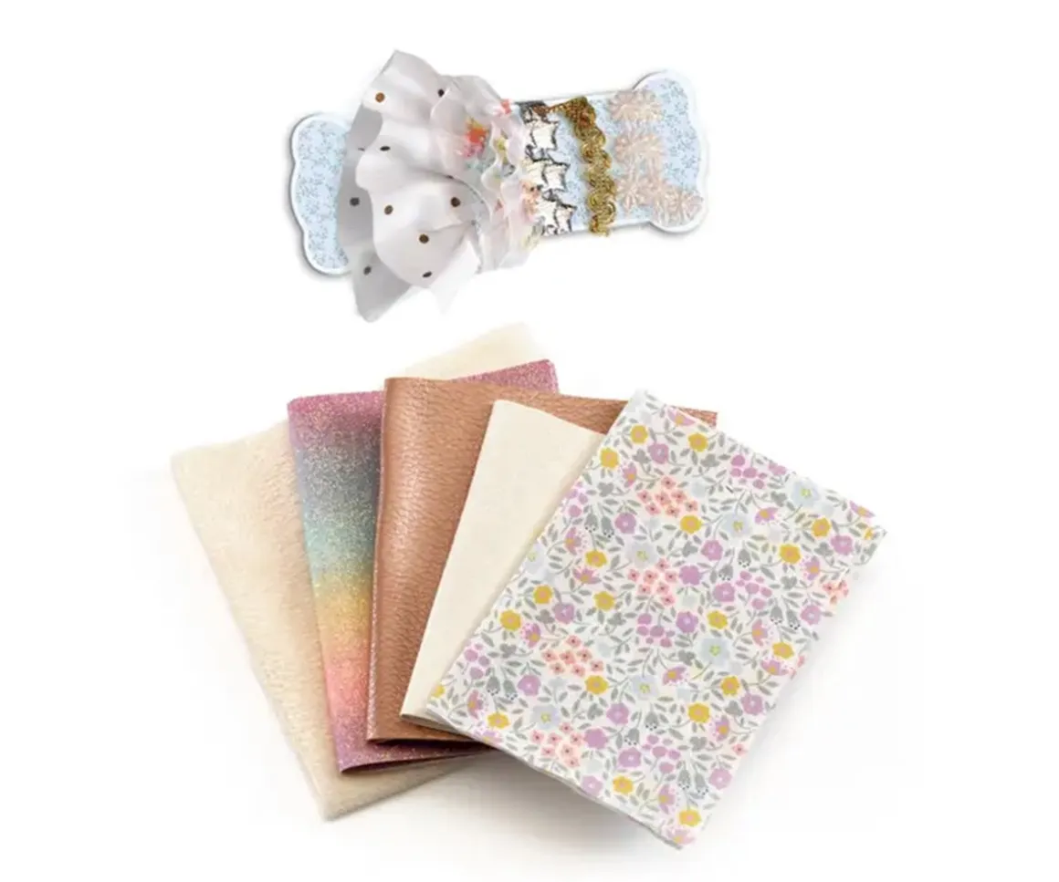 - Contiene: tijeras, cintas, patrones, cordón, tejidos diferentes y diversos adornos