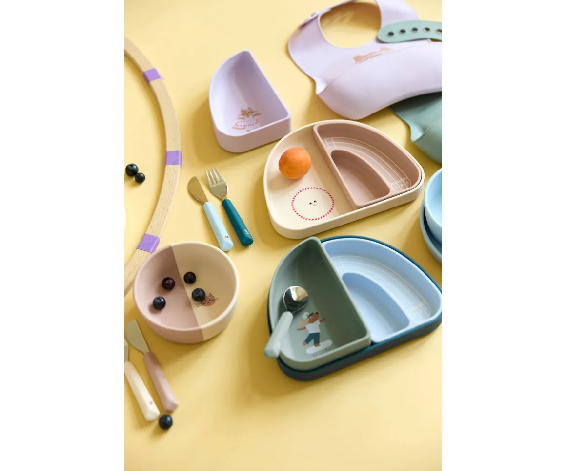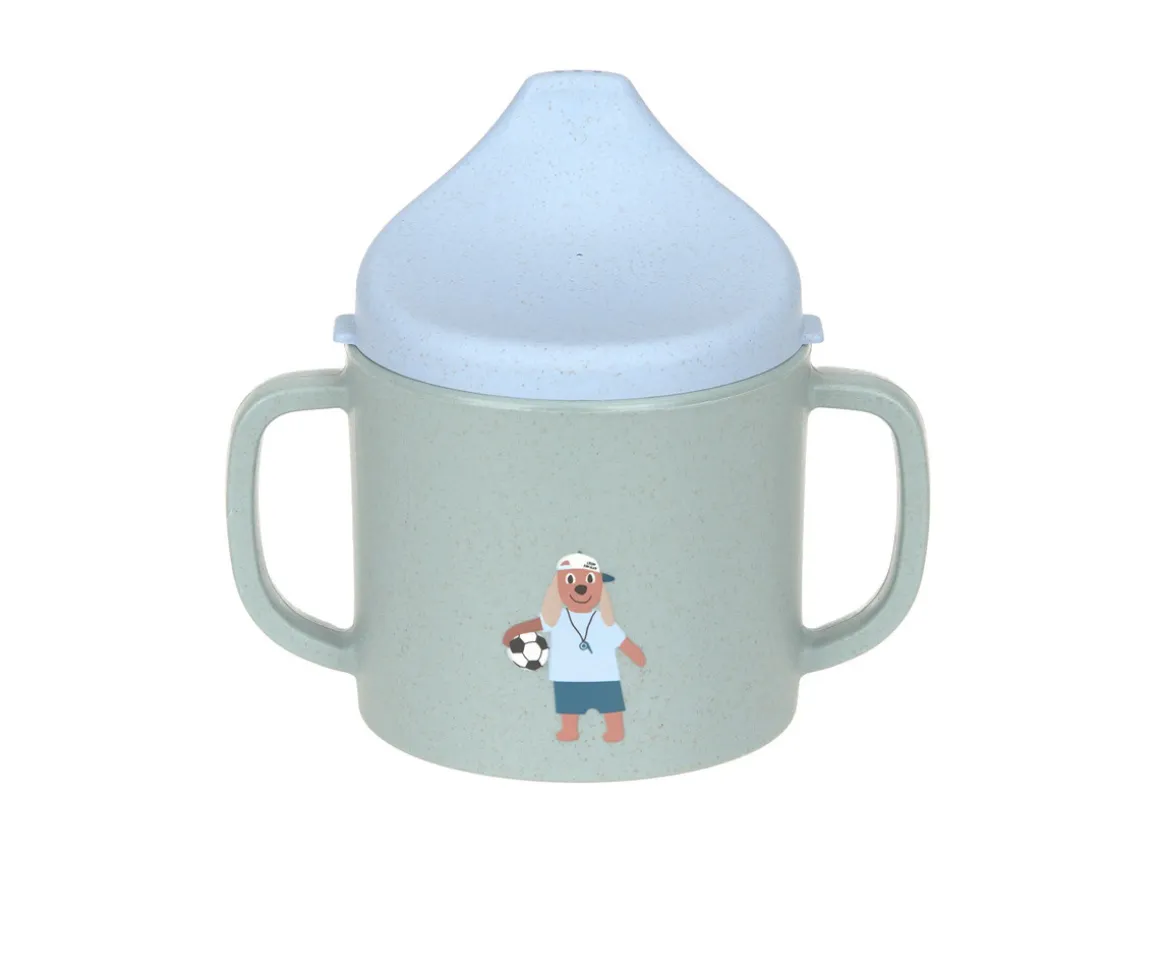 Taza de aprendizaje para bebés de Lässig a partir de 6 meses. Su diseño con dos asas lo hace cómodo para las manos de los más pequeños y con la tapa evita posibles derrames.
