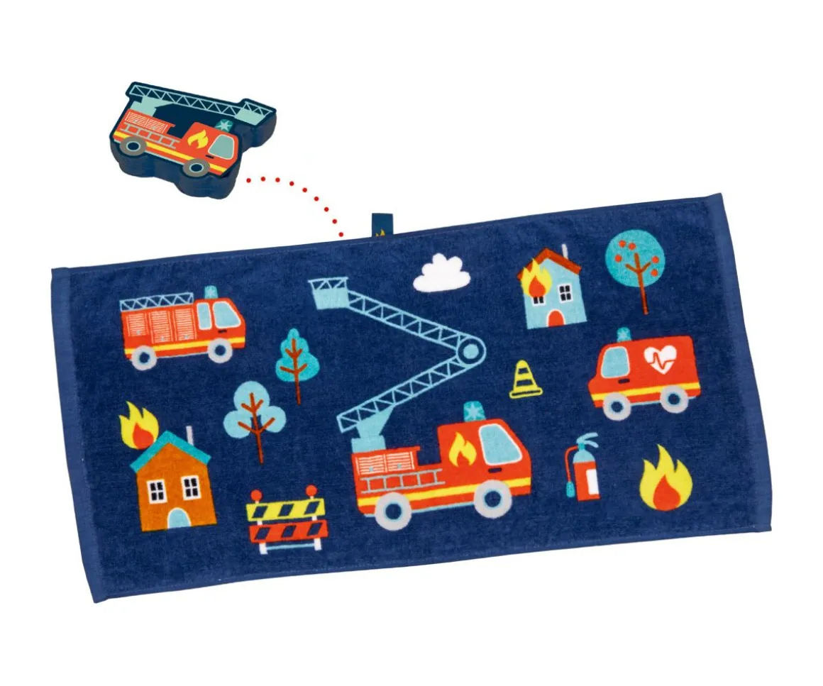 La toalla decorada con temática de bomberos se desplega como por arte de magia cuando entra en contacto con el agua. De un formato pequeño y compacto, se convierte rápidamente en una adorable toalla de 100 % algodón, suave con la piel y perfecto para el uso diario.