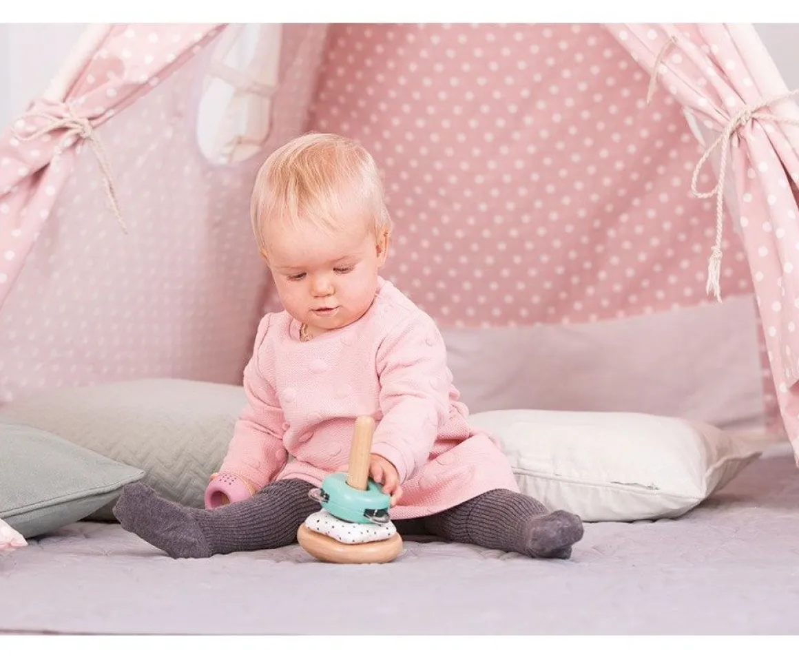 Apila las diferentes piezas y construye la torre, pero no sin antes aprender sobre los sonidos y las texturas. Pensada no solo para entretener, ayuda a mejorar la coordinación mano-ojo y estimula los sentidos.