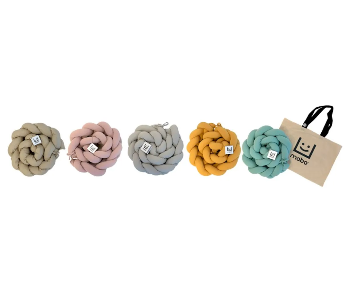Este original protector de cuna en forma de trenza es perfecto también como chichonera y cojín de lactancia.