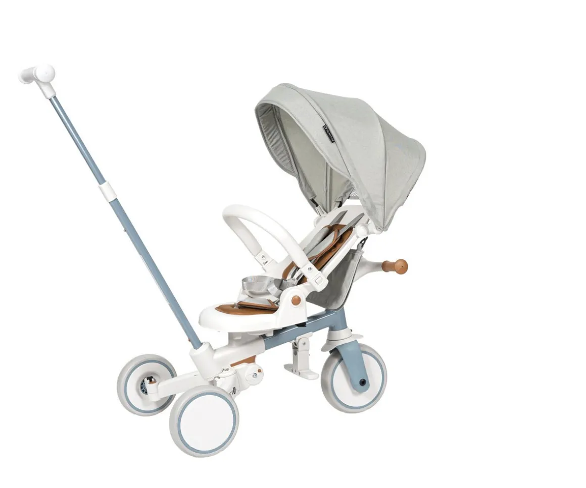 Este triciclo se irá transformando y adaptando a medida que el niño o niña crece. De triciclo a bicicleta con o sin pedales, pasando por todos los modelos necesarios para la adaptación del niño. Es adecuado a partir de los 12 meses y viene con una barra de empuje extraíble que se puede colocar en la parte posterior del triciclo para ayudar que el peque comience de manera más segura.