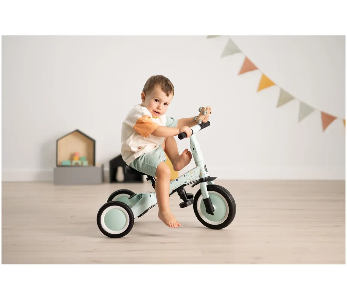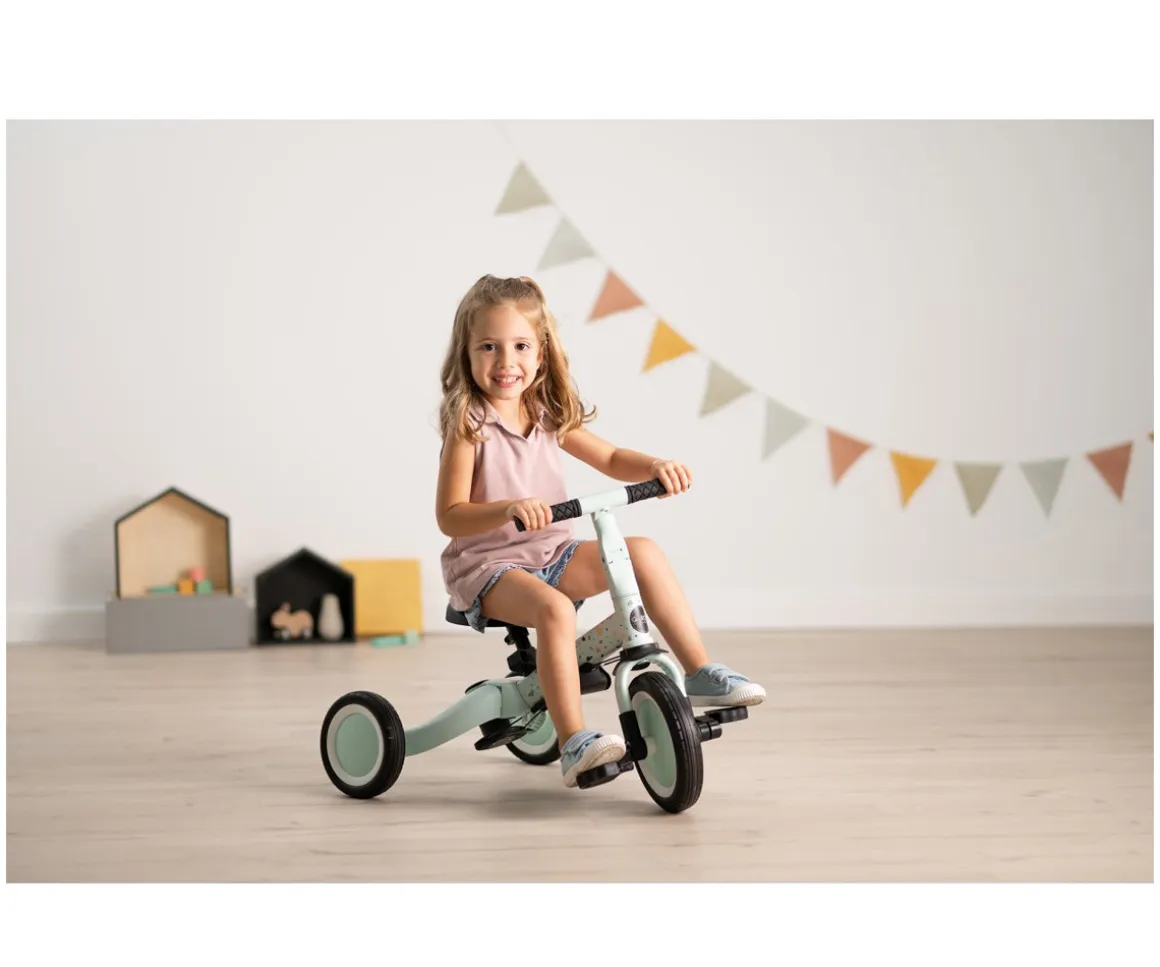 Al igual que su hermano mayor, el modelo Gyro, este triciclo evoluciona con el tiempo: puede usarse primero como triciclo guiado por los padres y, más adelante, transformarse fácilmente en un triciclo o bicicleta independiente, fomentando la autonomía y la confianza del niño.