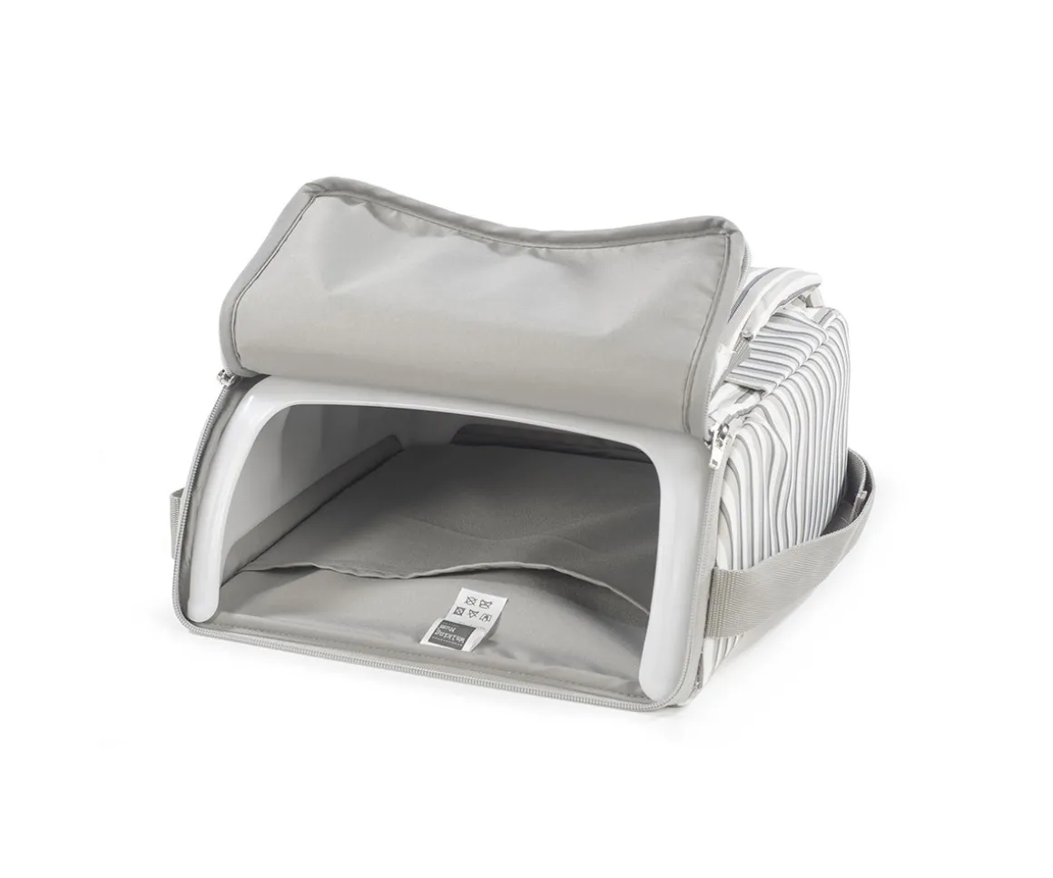 Trona portátil de la colección Botton Raya de Walking Mum con función 2 en 1: asiento elevador y bolsa de almacenaje con asa para colgar del hombro.
