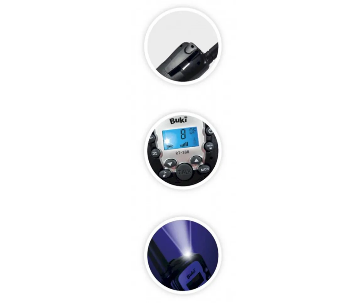 Con 8 canales diferentes, podrás comunicarte en cualquier lugar. Además, cuentan con un modo de llamada con 10 tonos diferentes, una linterna incorporada y una pantalla retroiluminada. ¡No te pierdas ninguna aventura!