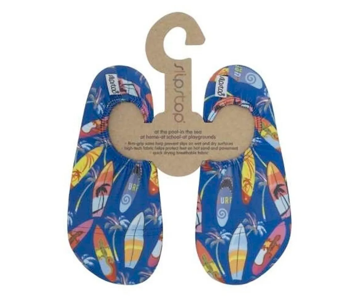 Las zapatillas antideslizantes Slipstop para niños,con protección UV, son de agarre firme y están pensadas para evitar resbalones en suelos mojados o húmedos. También protege los pies de superficies rugosas, calientes o piedras.