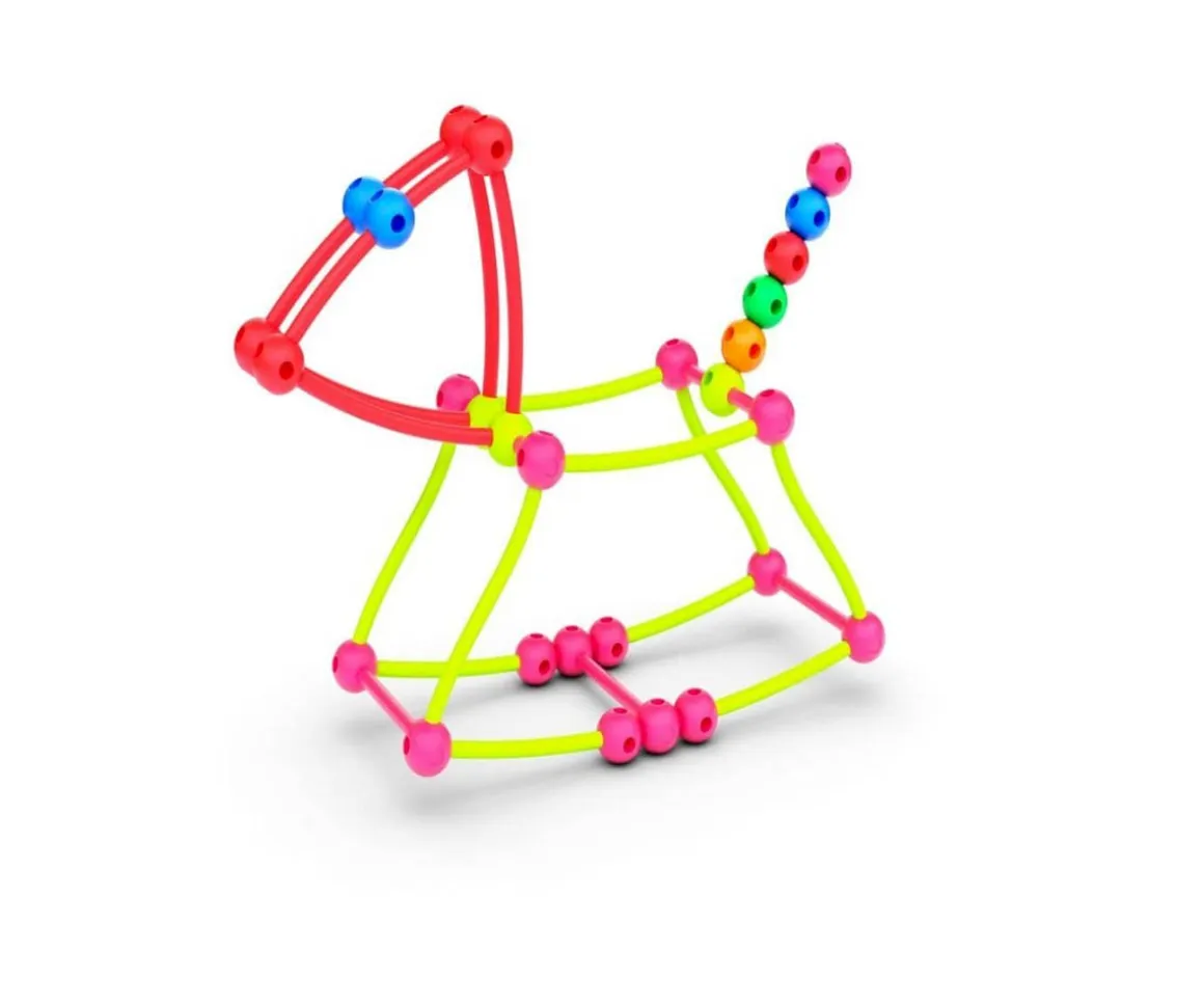 Stik son varillas flexibles que se unen entre si usando bolitas con agujeros para crear estructuras 3D.