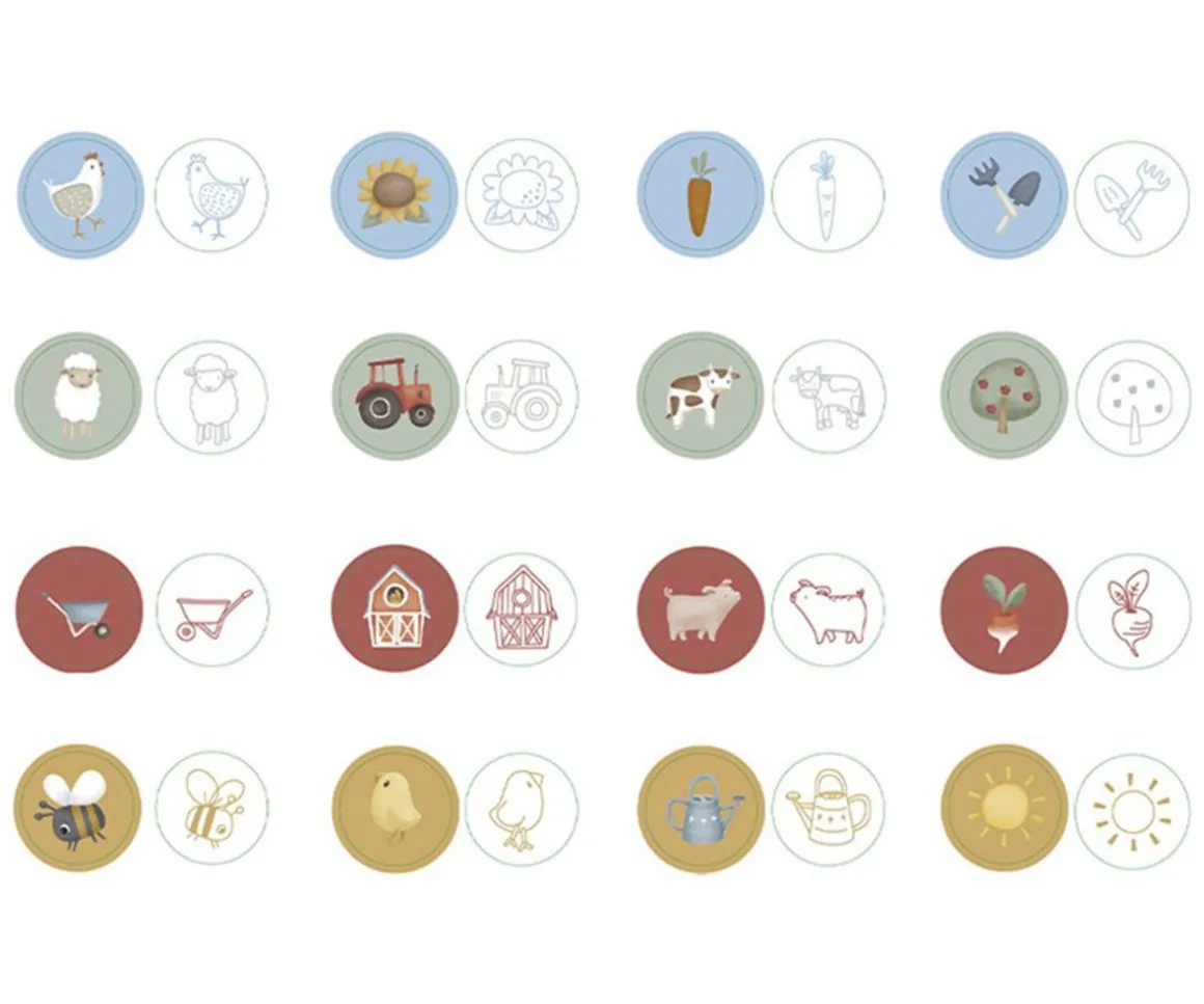 16 bonitos sellos de animales de la granja de la colección Little Farm de Little Dutch. Ideales para estampar en las hojas y crear historias o pintar ilustraciones.