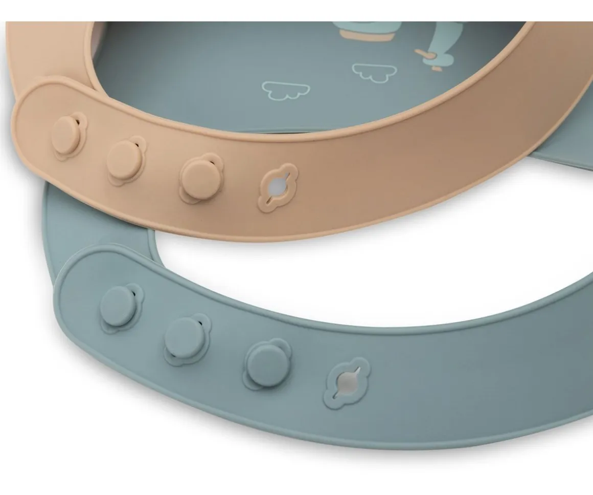 Estos baberos de silicona cuentan con un práctico cierre en el cuello. Están hechos 100% silicona y cuentan con un práctico bolsillo para recoger migas o líquidos, asegurando que la comida no manche la ropa del bebé mientras comen.