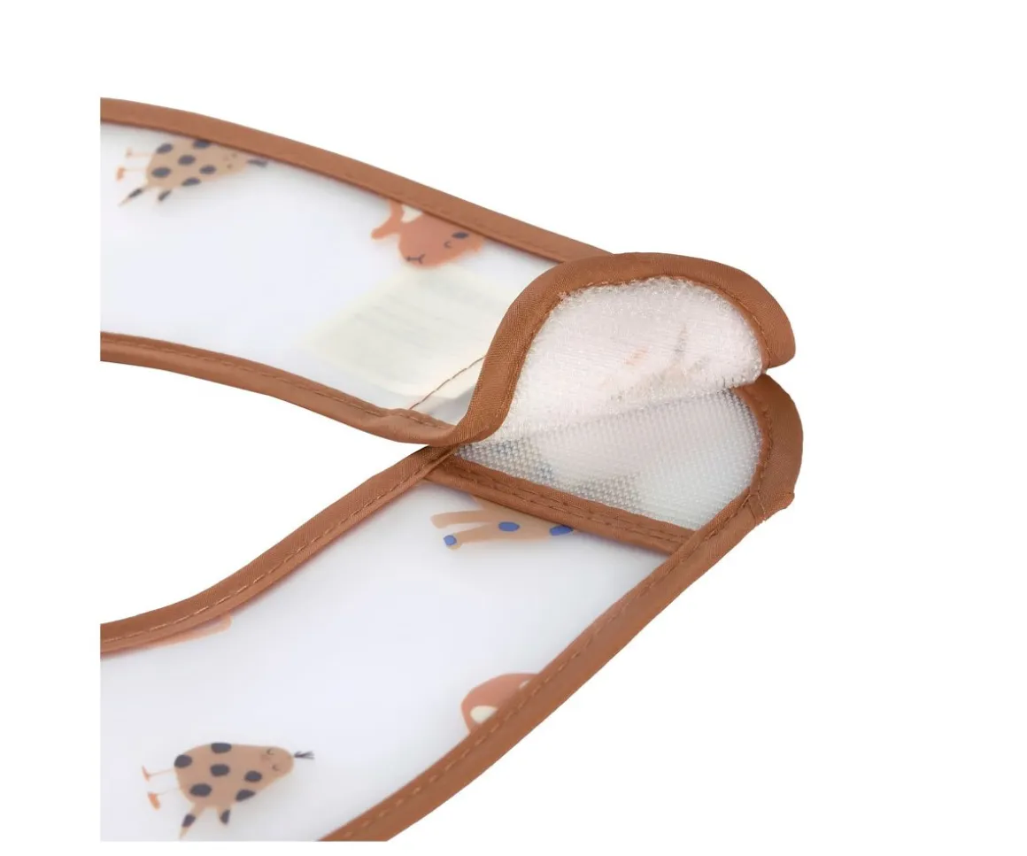 Baberos con un bolsillo delantero y que se ajusta mediante velcro en la parte posterior.