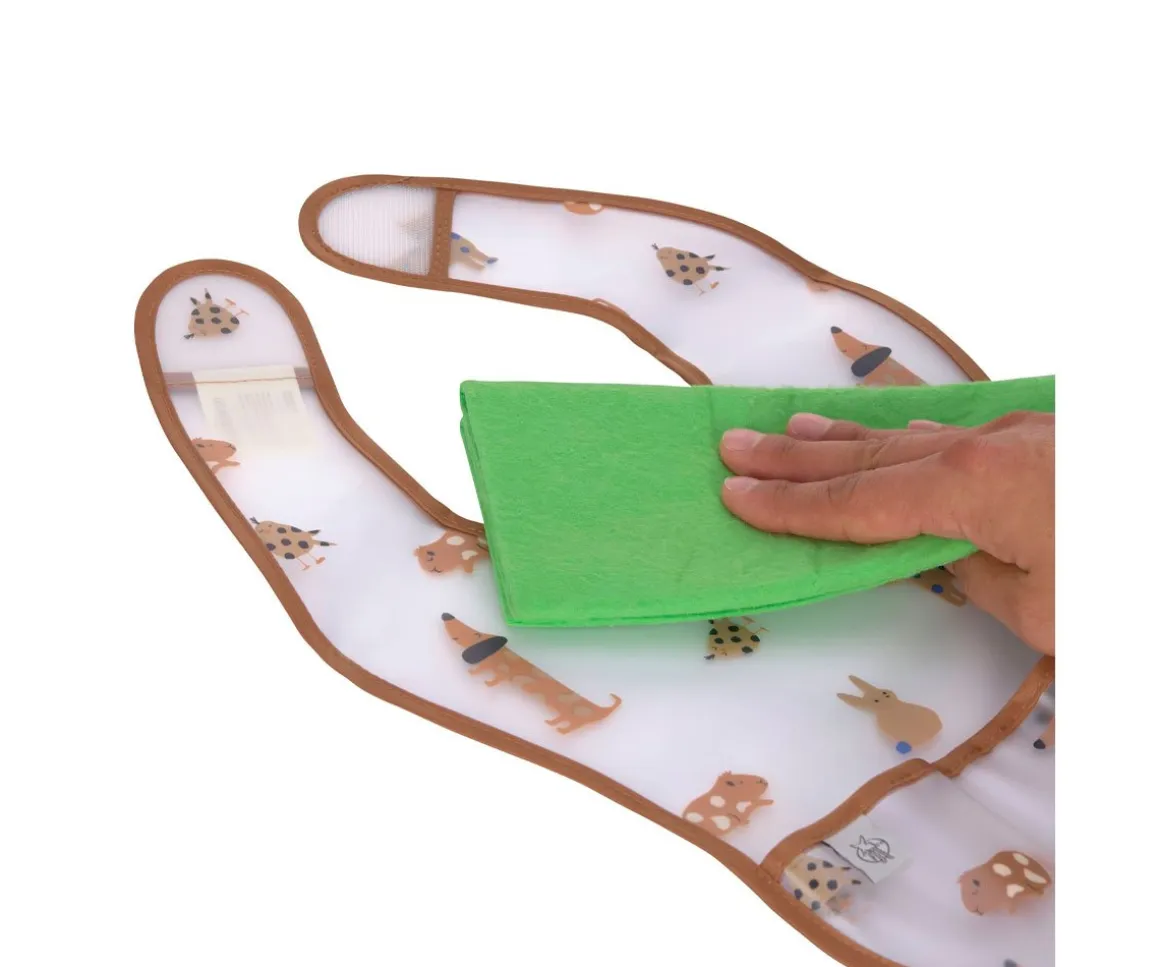 Es impermeable, lo que le hace ideal no sólo para comer sino también para realizar manualidades en casa o en la guardería.