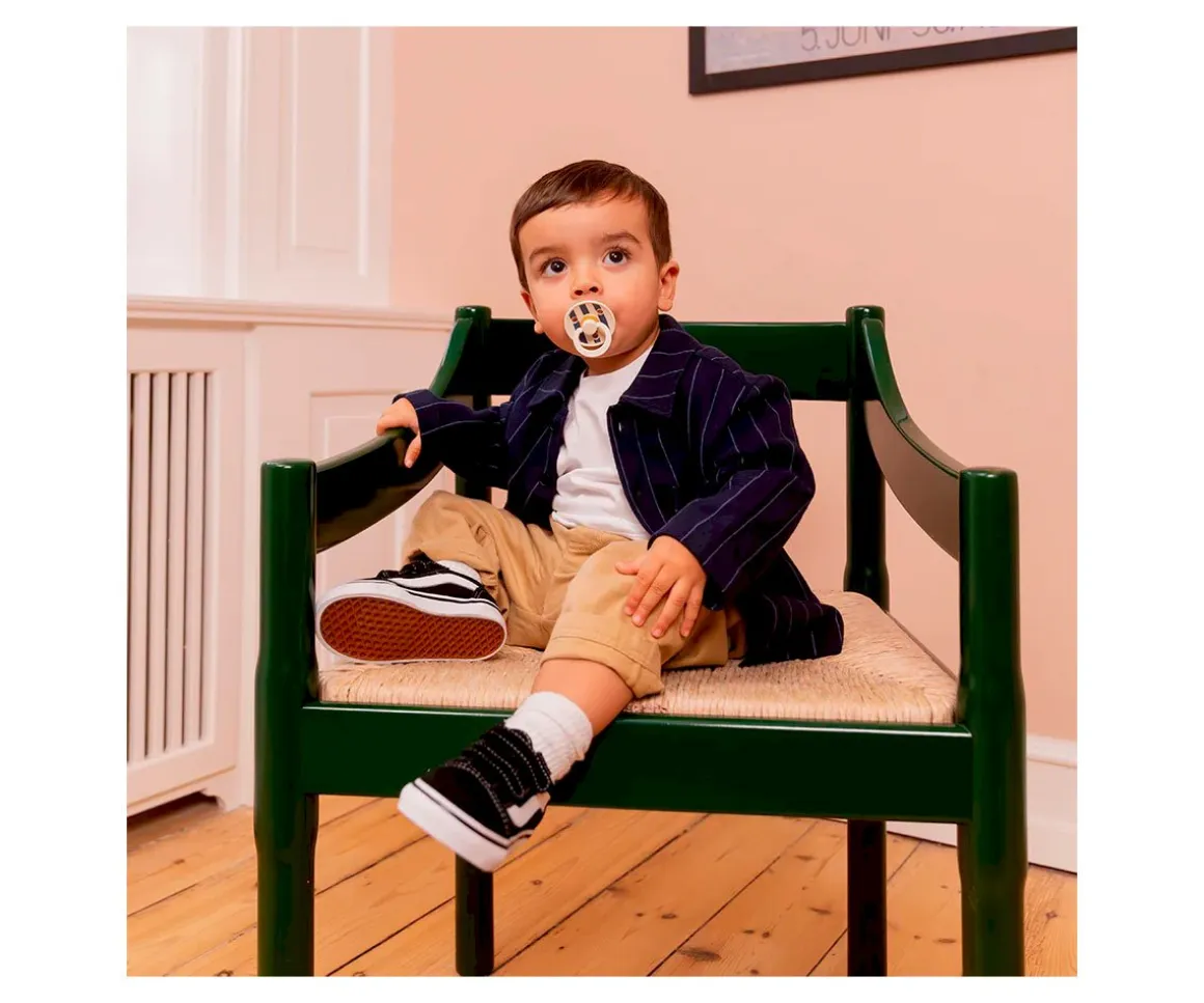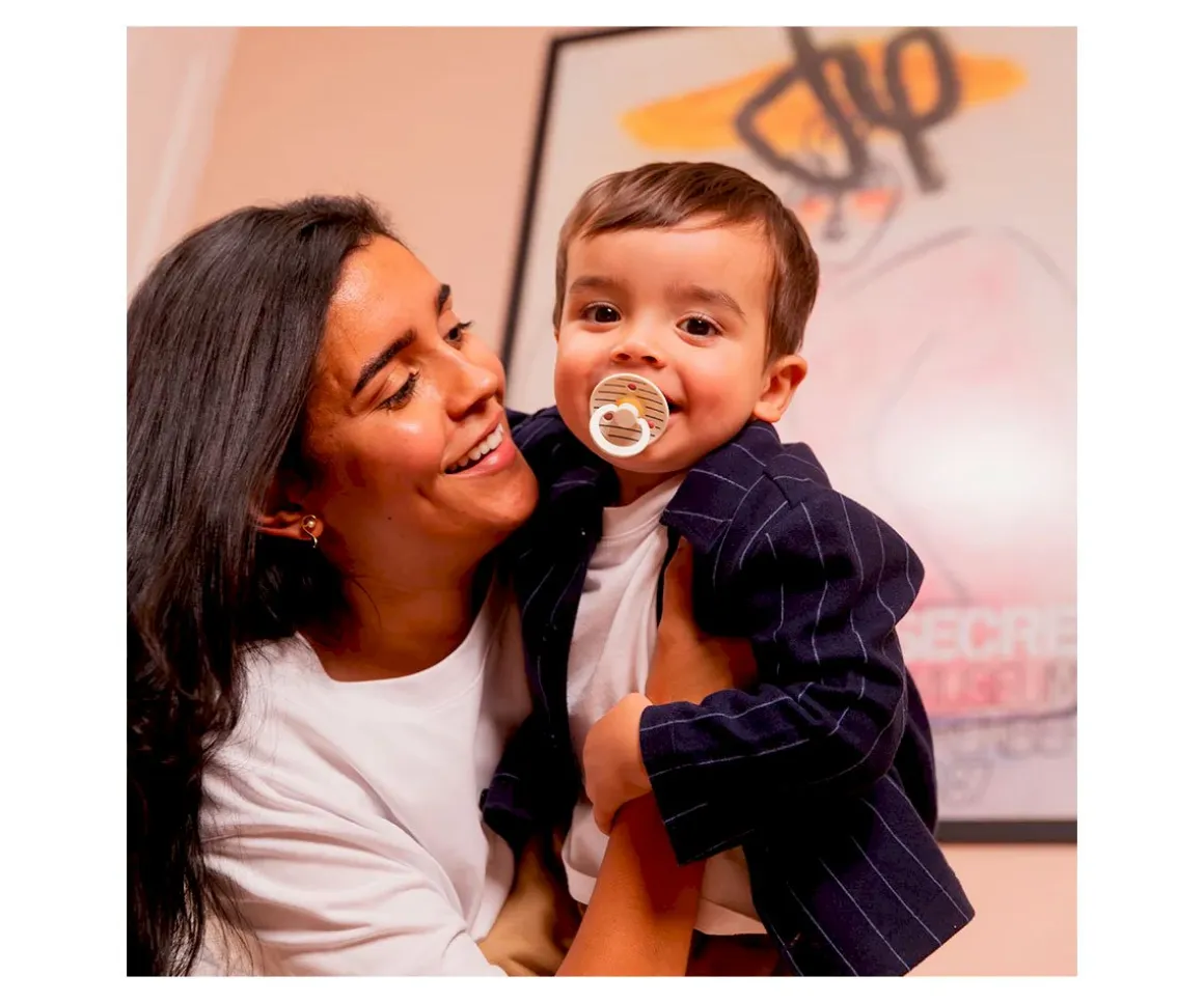 - Simétrica: También llamada fisiológica. Promueve una técnica de succión donde la lengua está plana y presiona el chupete contra el paladar por lo que el bebé no necesita succionar tan fuerte