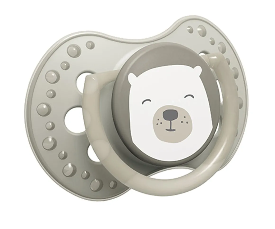Fomenta el reflejo de succión saludable. Su forma exclusiva y su tetina dinámica ayudan a respirar libremente a través de la nariz y tragar saliva; evitan el reflejo de morder el chupete y permiten el desarrollo correcto del habla y del encaje de los maxilares (siguiendo las recomendaciones de especialistas en ortodoncia y logopedia).
