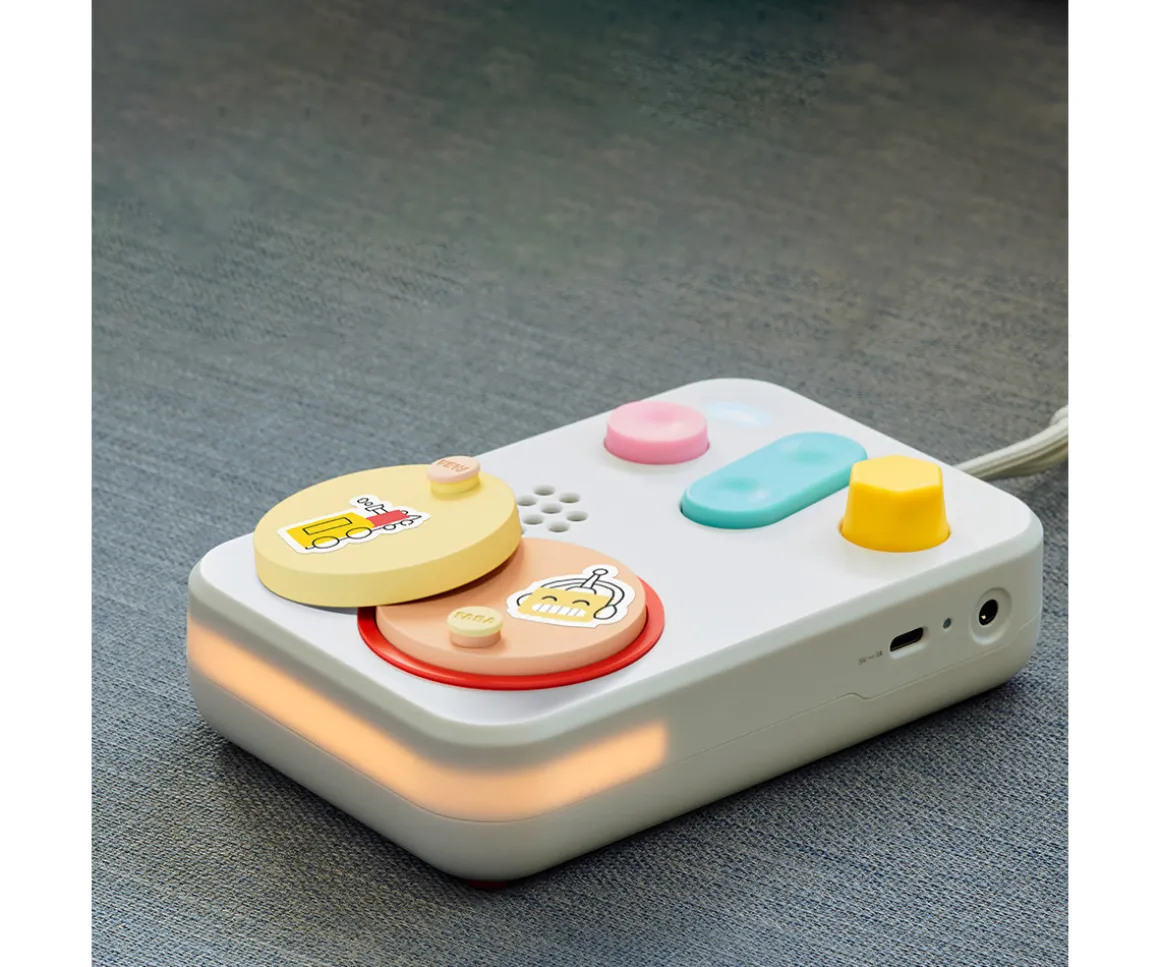 La forma más divertida y personalizada de disfrutar de historias, canciones y sonidos para niños. Cada disco, de color plátano o melocotón, permite almacenar hasta 90 minutos de contenidos que estimulan la imaginación, la creatividad y el aprendizaje de los más pequeños.