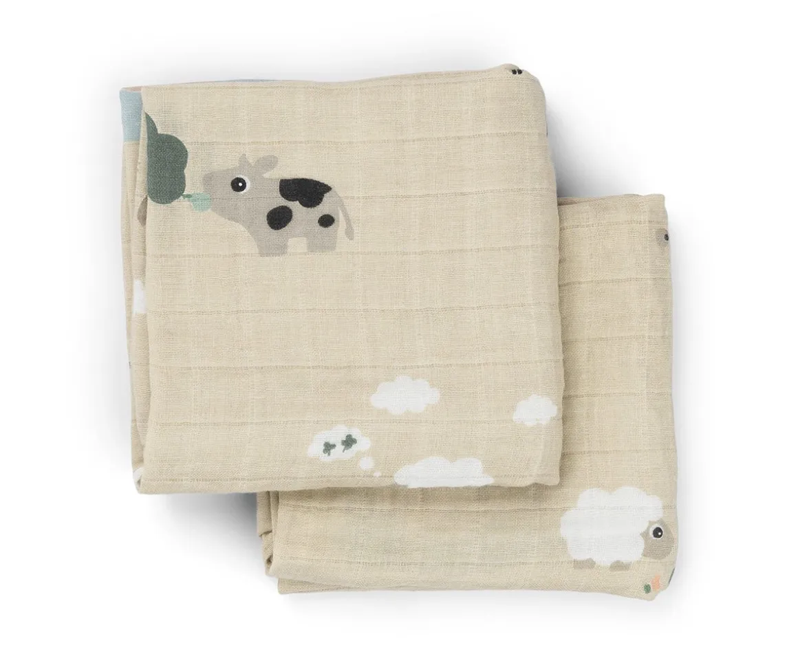 Las muselinas son esenciales para tu bebé: perfectas para cambiar pañales o para después de la lactancia, ayudando a mamá y a papá en los momentos especiales.
