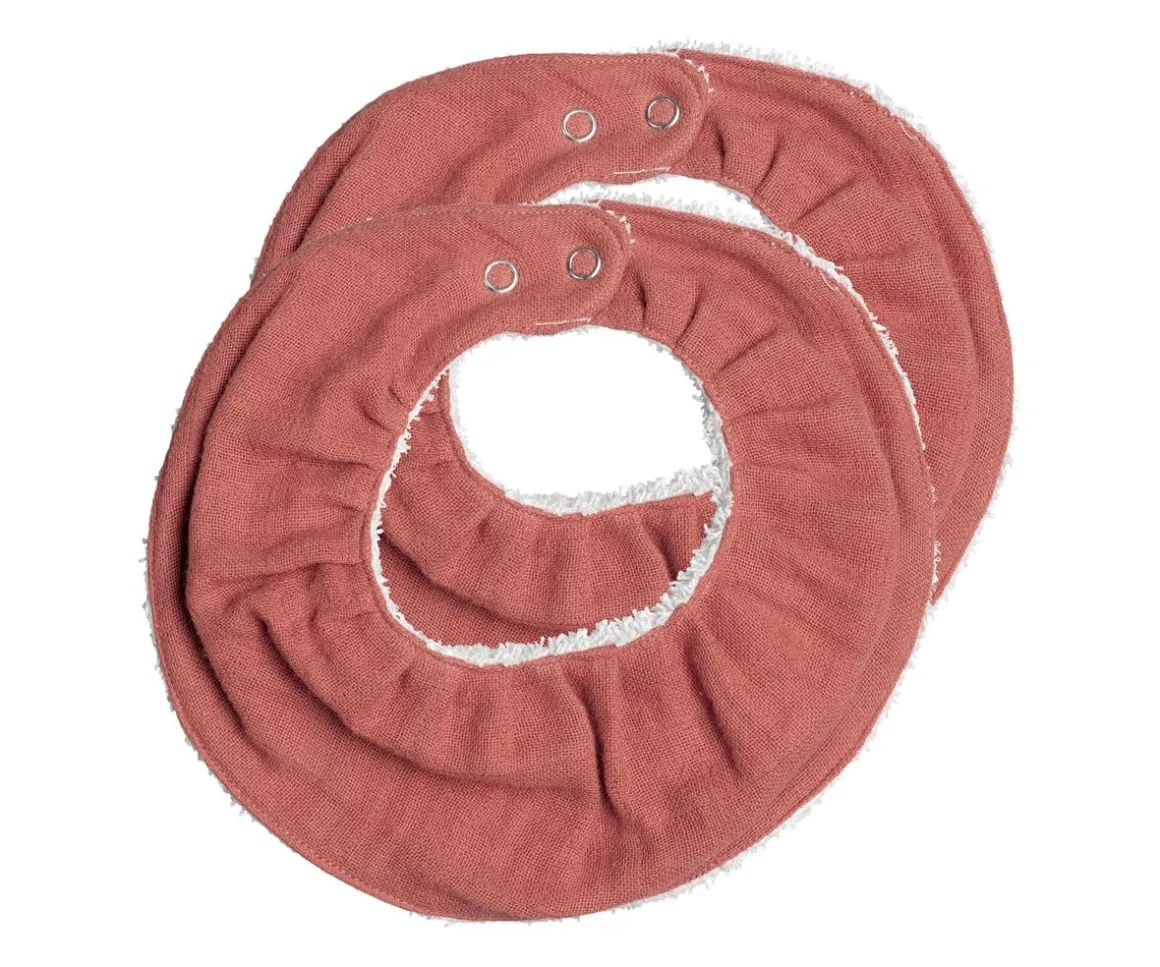 Secababitas con volantes fabricados en muselina de algodón orgánico, perfecto cuando tu bebé comienza con el proceso de dentición.