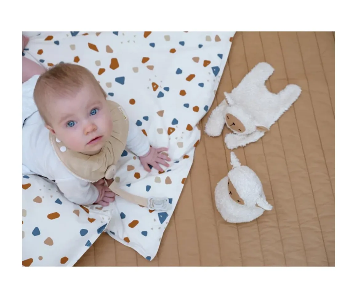 Secababitas con volantes fabricados en muselina de algodón orgánico, perfecto cuando tu bebé comienza con el proceso de dentición.