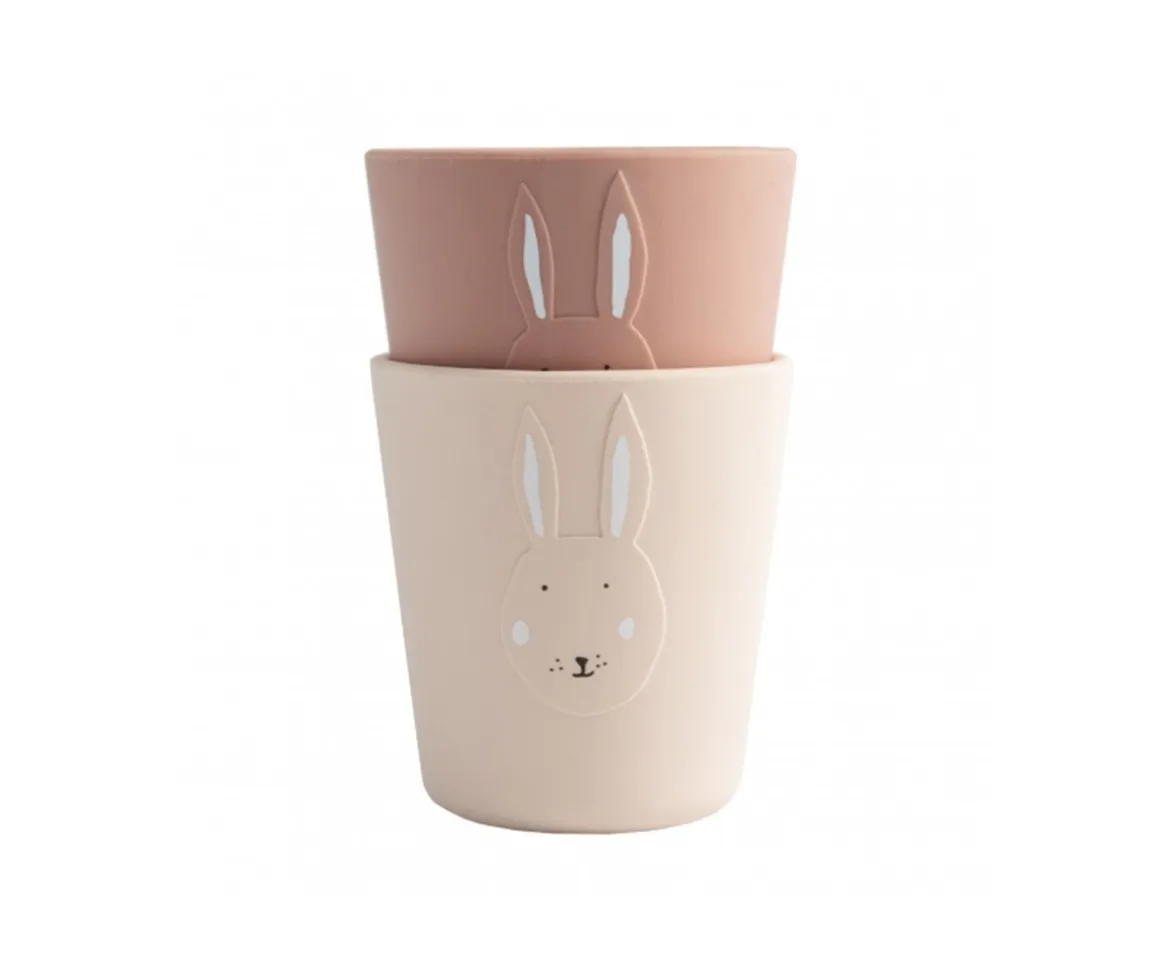 Set de 2 vasos de silicona Trixie Mrs. Rabbit, tienen el tamaño perfecto para las manos más pequeñas. Fácil de apilar para un fácil almacenamiento