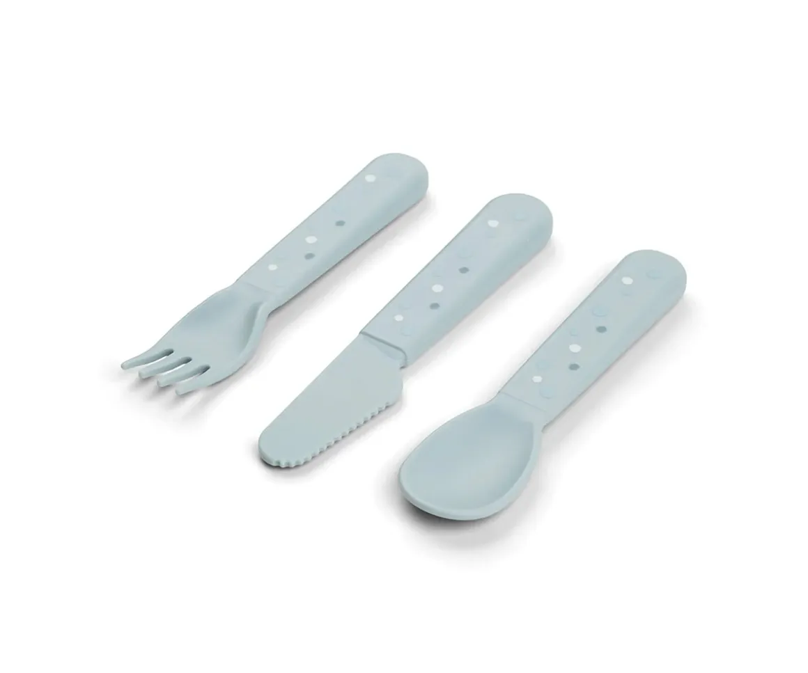 El juego de cubiertos Cutlery tiene formas redondeadas para que los niños pequeños practiquen comiendo solos de manera segura. Los cubiertos están diseñados para manos pequeñas y han sido probados por niños.