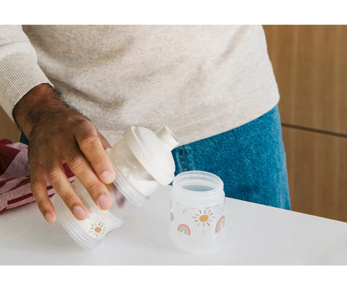 3 contenedores de leche en polvo Mio Forest Friends de Mepal. Se apila fácilmente, su cierre es hermético e incluye tapa dispensadora.