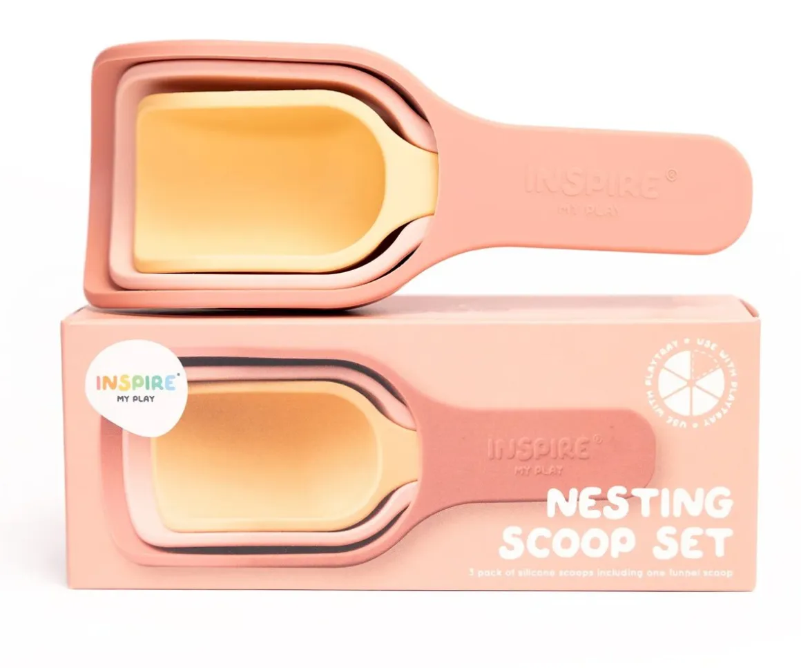 Inspire My Play trae este set de 3 palas de silicona de diferentes tamaño que encajan entre sí y son ideales para jugar en la arena, durante el baño o en tu mesa sensorial.