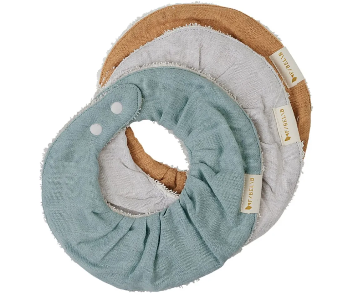 Secababitas con volantes fabricados en muselina de algodón orgánico, perfecto cuando tu bebé comienza con el proceso de dentición.