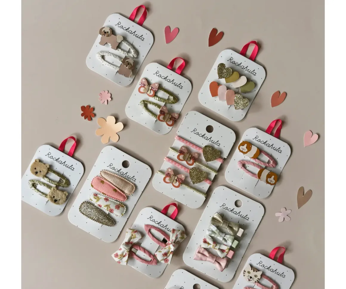 El Elsie Fabric Clip Set de Rockahula incluye 4 preciosas pinzas de tela, cada una forrada con estampados florales y tonos suaves que combinan perfectamente entre sí.
