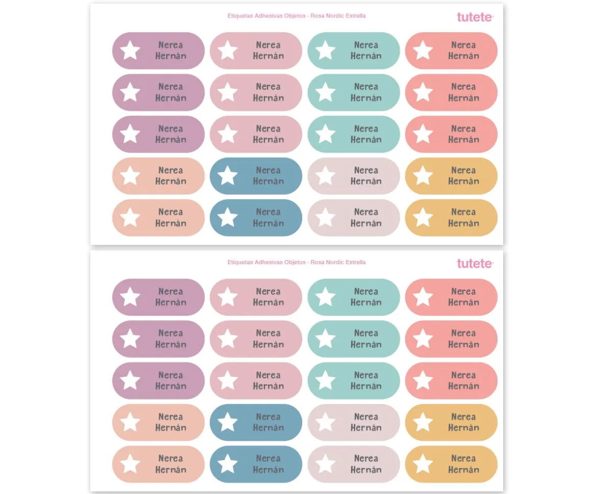 Práctico pack de 40 etiquetas adhesivas personalizadas con el que podrás etiquetar libros, fiambreras, juguetes, botellas… ¡Márcalo todo para no perder nada!