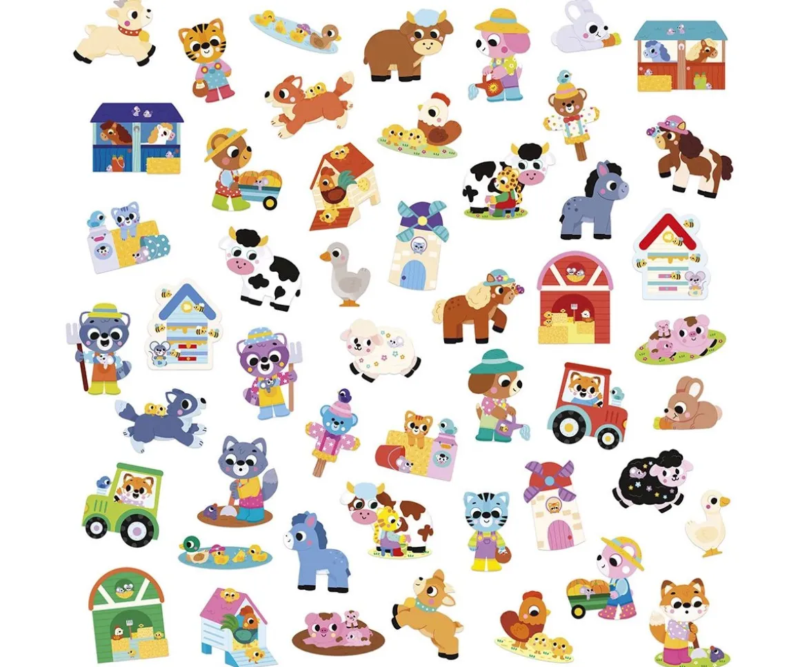El tamaño de las pegatinas ha sido diseñado para las manos de los peques, que podrán cogerlas y pegarlas con facilidad. Explora todo a los animalitos y sus actividades en la granja.