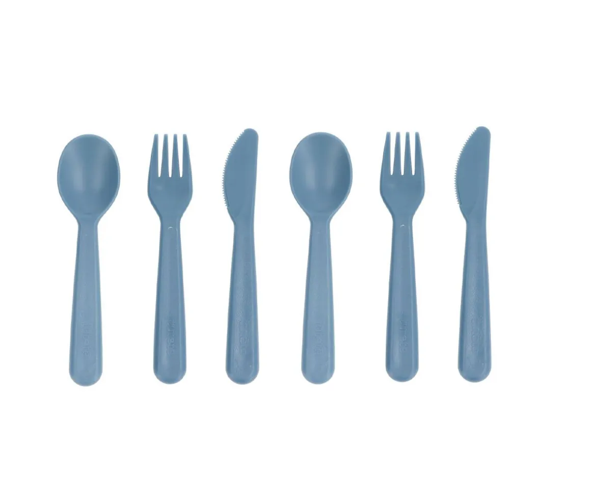Set de cubiertos formado por 2 tenedores, 2 cucharas y 2 cuchillos. Tiene el tamaño y la forma perfecta para que los peques los puedan agarrar fácilmente, además son duraderos y con extremidades redondeadas.