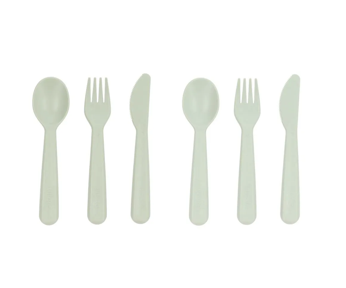 Set de cubiertos formado por 2 tenedores, 2 cucharas y 2 cuchillos. Tiene el tamaño y la forma perfecta para que los peques los puedan agarrar fácilmente, además son duraderos y con extremidades redondeadas.