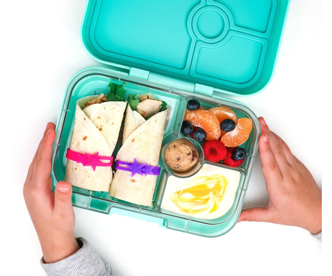 Las Wrap Bands Brights de Lunch Punch son el complemento perfecto para mantener los wraps y snacks bien sujetos dentro de la lonchera. Estas bandas de silicona reutilizables permiten que los niños disfruten de sus comidas de forma cómoda, ordenada y divertida, fomentando la autonomía durante el almuerzo.