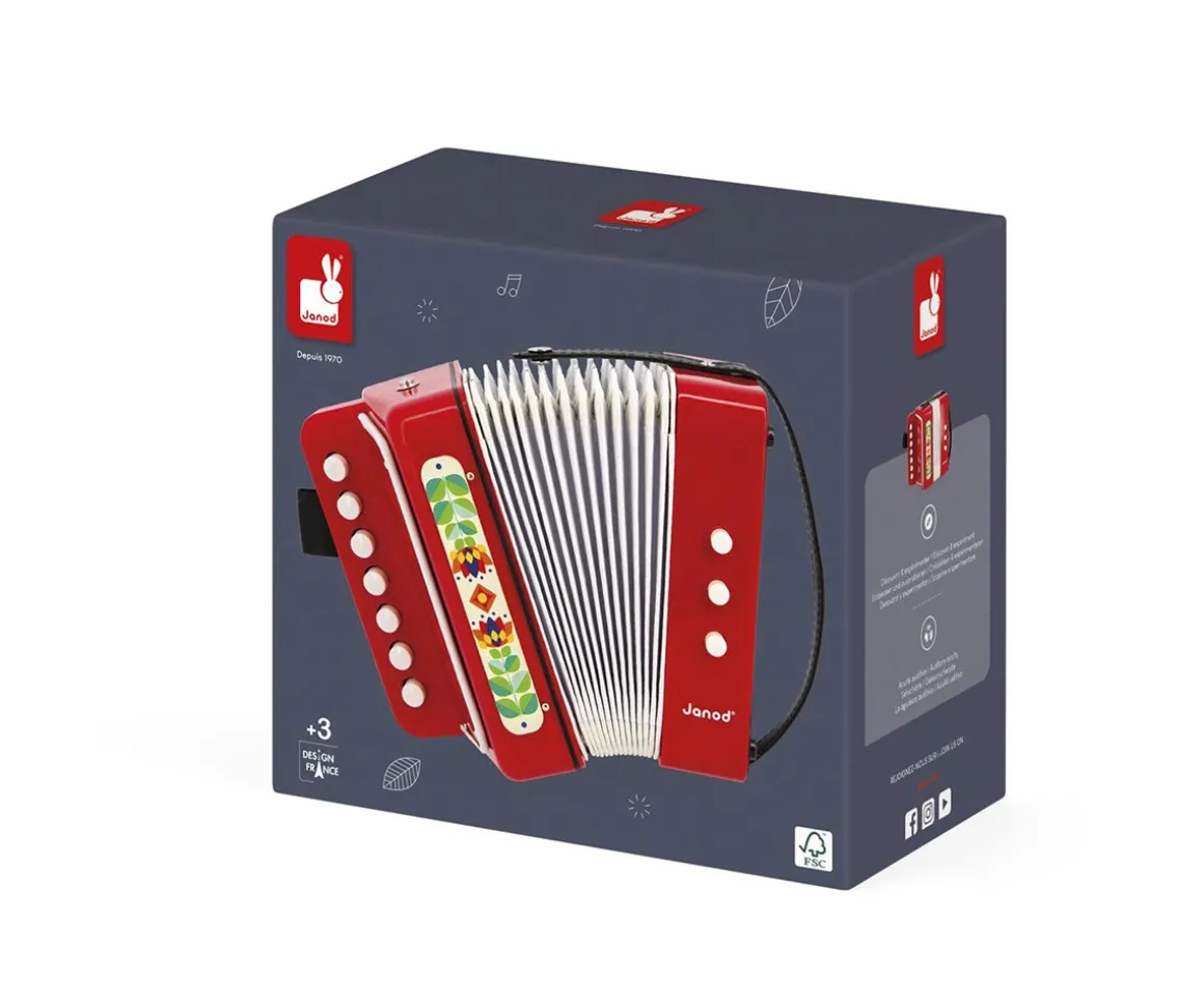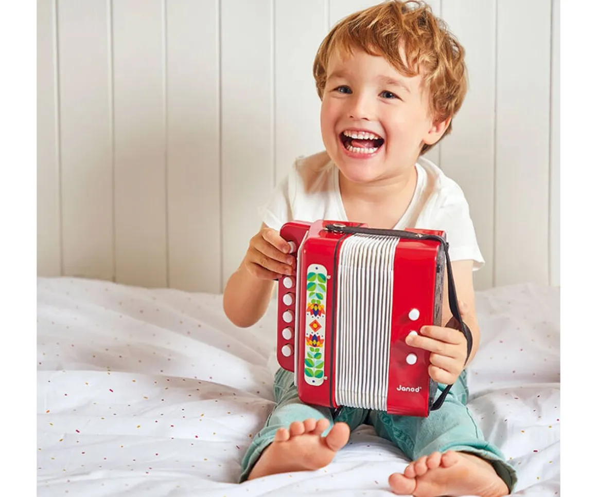 Este acordeón maravillará a cualquier peque, ya que tiene todo lo que un auténtico acordeón de fuelle: cuenta con 7 teclas de sonido y 2 botones para cambiar los tonos. Además, el tercer botón sopla aire para facilitar la apertura y cierre del acordeón. ¡Un juguete de imitación perfecto para que los niños se sientan como los mayores!