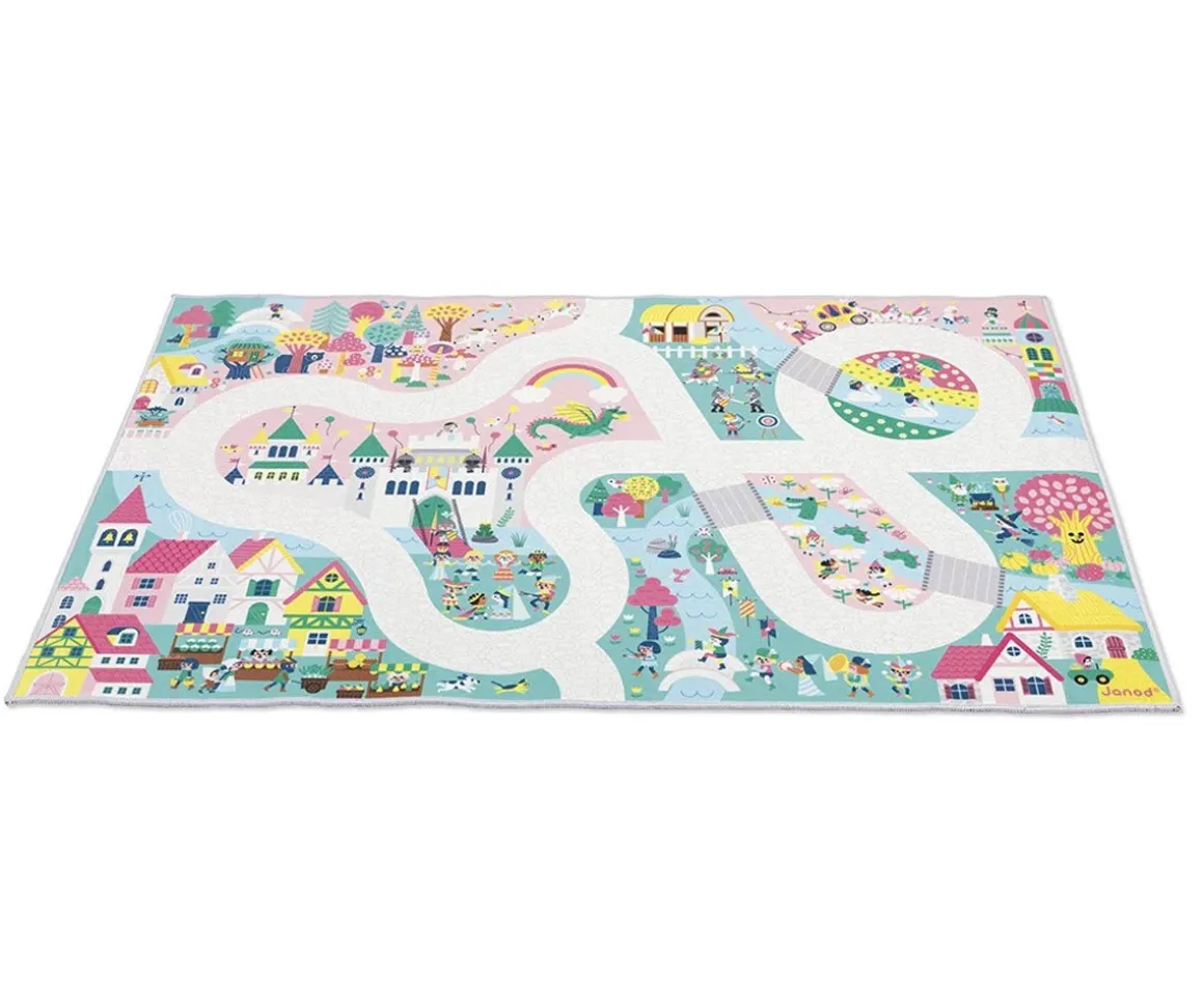Las alfombras de juegos con circuito de la colección Cross Roads de Janod están repletas de carreteras, elementos divertidos como animales, casas y mucho más.