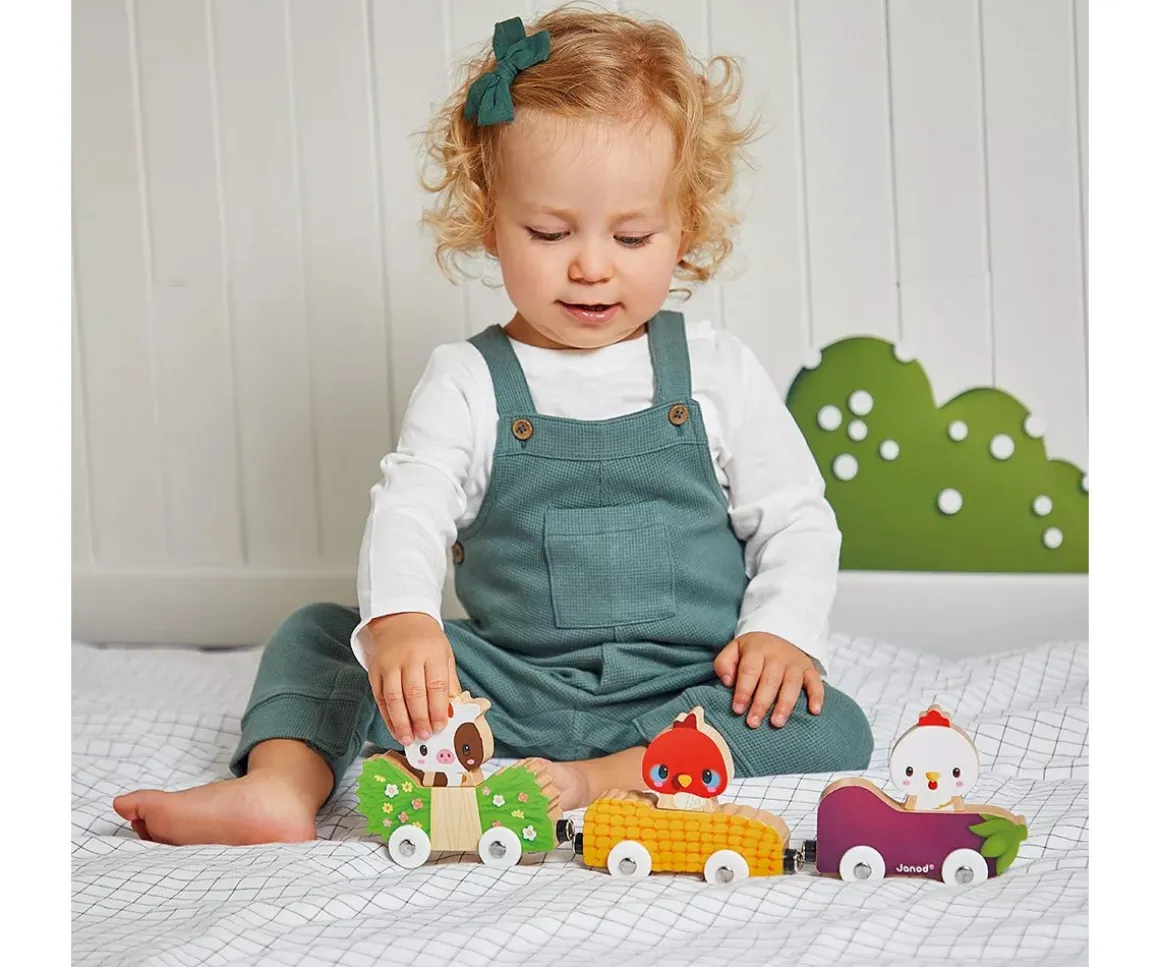 Los niños pueden relacionar cada animal con su comida favorita o colocarlos en el vehículo que prefieran, ¡son intercambiables! Además, pueden unirse como en un trenecito gracias a los imanes. ¡Una diversión magnética en la granja!