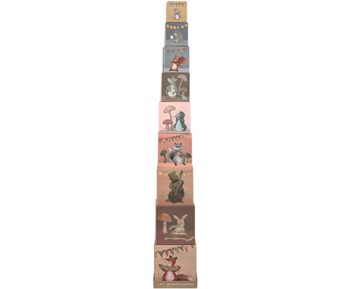 Esta pirámide apilable con el tema de los animales-músicos ayudará a los más pequeños a aprender a contar, medir y desarrollar la motricidad fina. Apila los cubos uno encima del otro y luego vuélcalos. A los niños les encanta este juego, no se cansan de él.