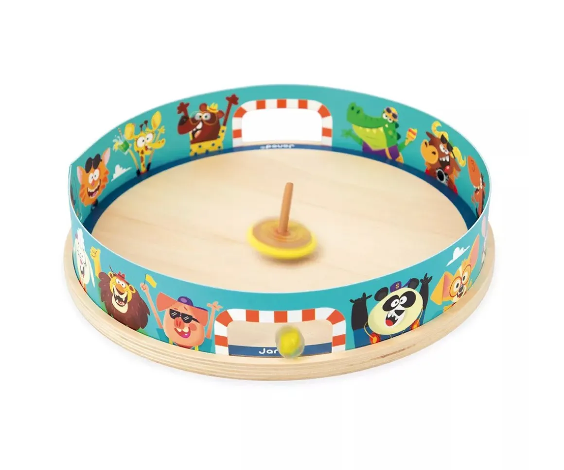 ¡Prepárate para la diversión con el emocionante juego de destreza de peonzas de Janod! En este juego, el objetivo es meter la canica en la portería del rival utilizando la peonza como herramienta de juego.