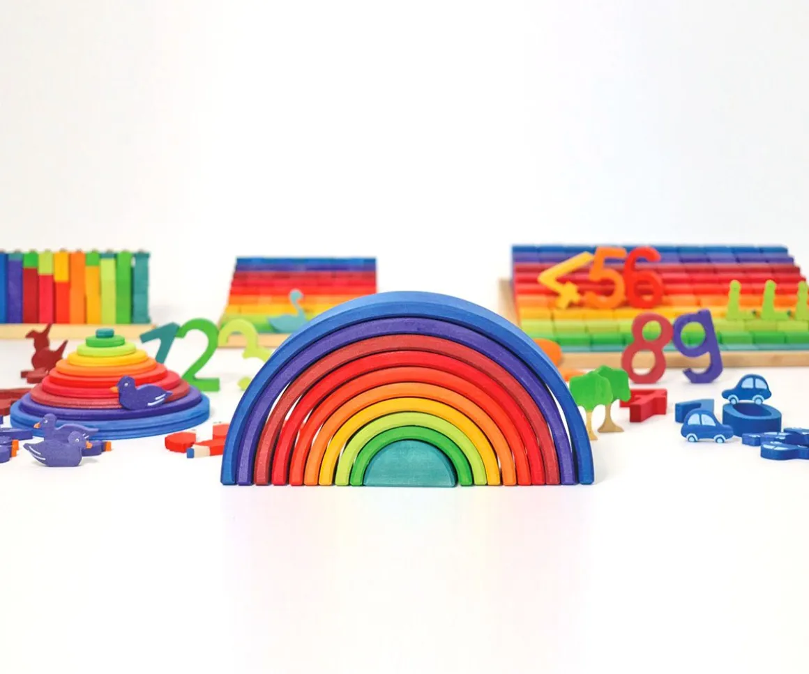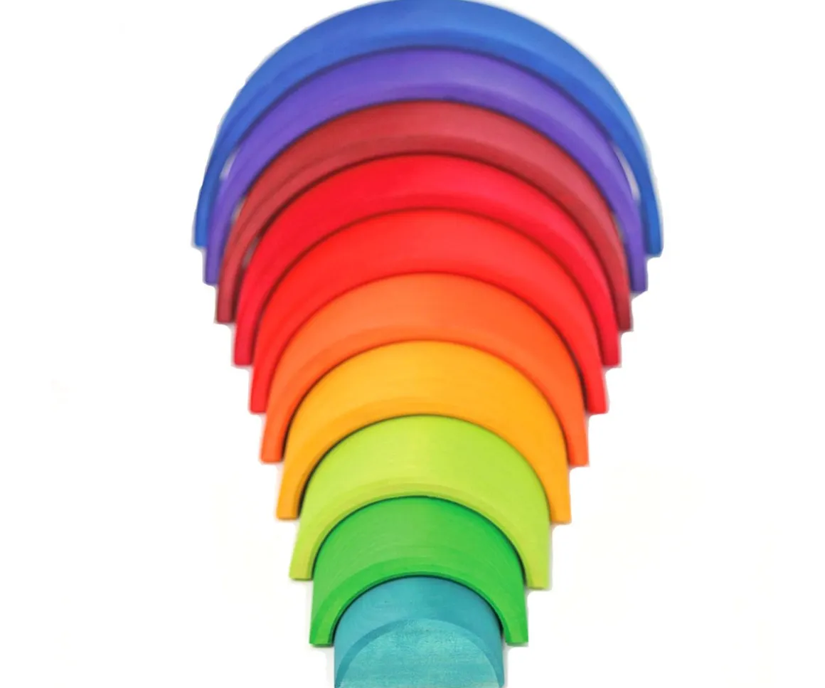 Arcoíris fabricado en madera, muy versátil e ideal para estimular la imaginación de los niños pequeños.