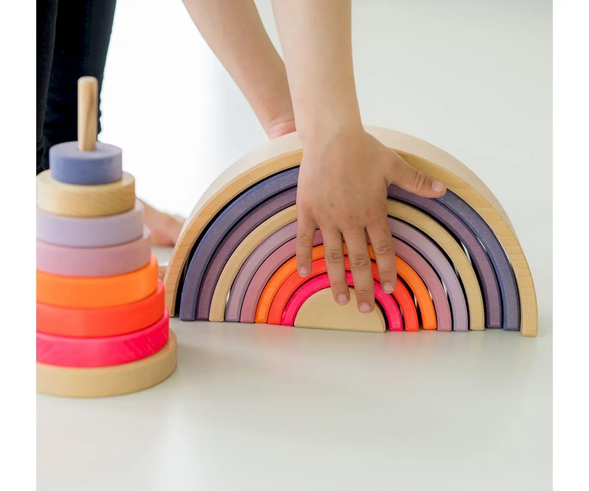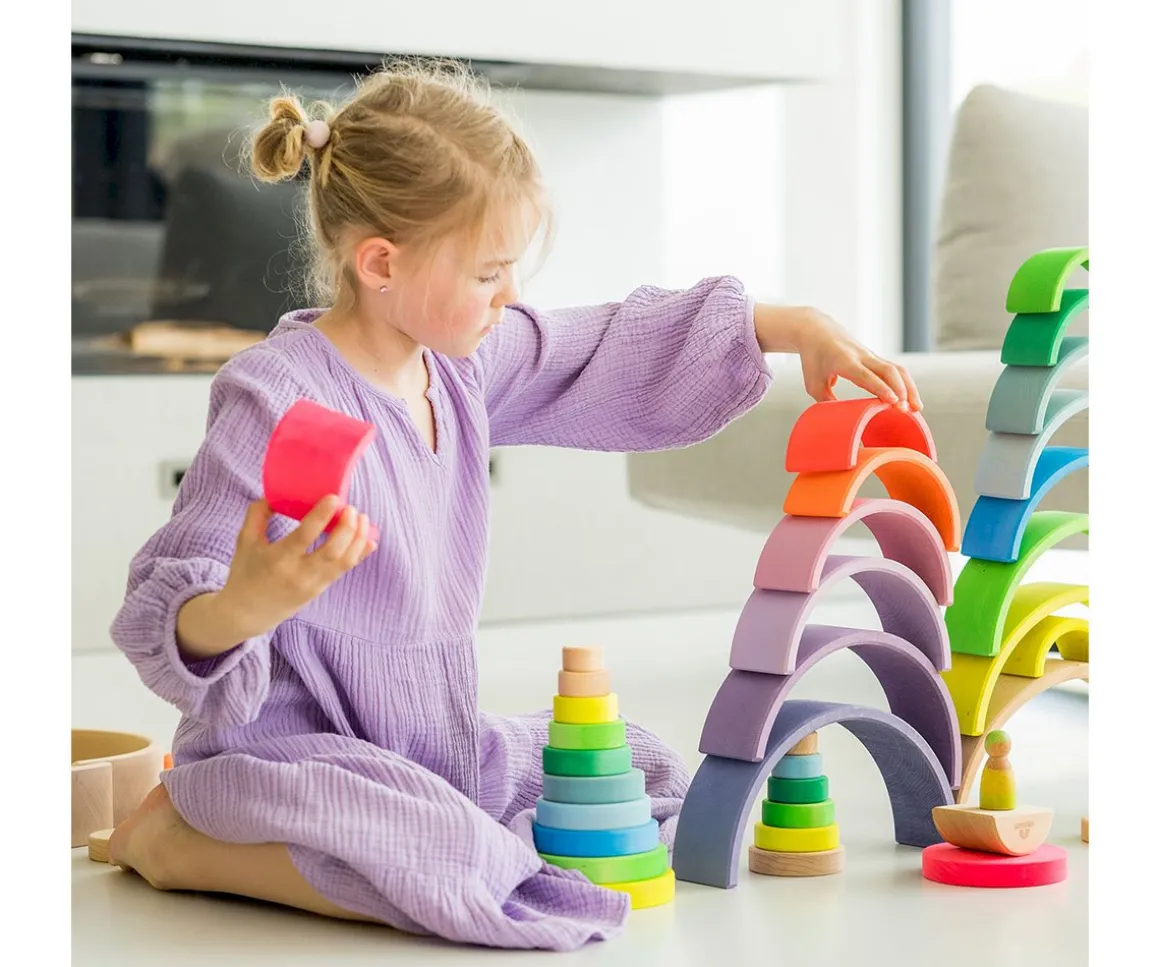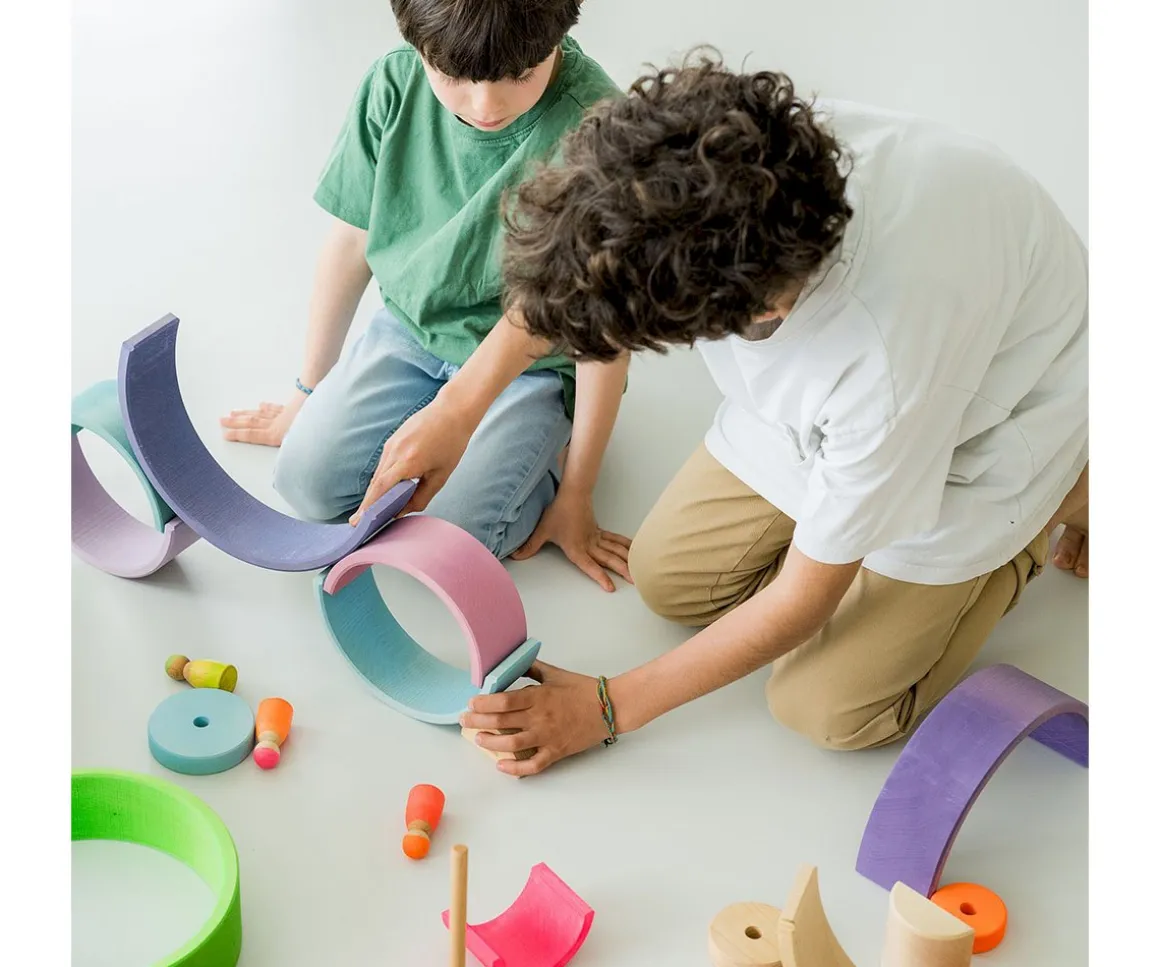 Con el arcoíris tendrán múltiples posibilidades para jugar y transformarlo en lo que ellos quieran: un tunel, un puente, una cuna de muñecas, apilables y mucho más.