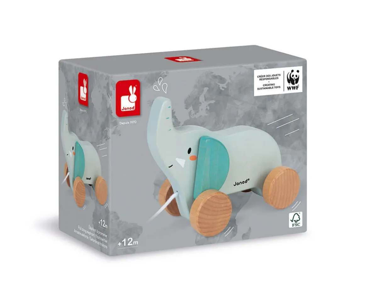 Este elefante seguirá a tu peque a todas partes gracias a sus cuatro ruedas de madera y a la cuerda de arrastre. Sus bonitos tonos pastel hacen que sea irresistible. Este juguete es ideal para desarrollar la motricidad y la imaginación. Diseñado en colaboración con WWF®. A través de esta colección Janod quiere inspirar y concienciar a las generaciones más jóvenes a favor de la fauna y la naturaleza.