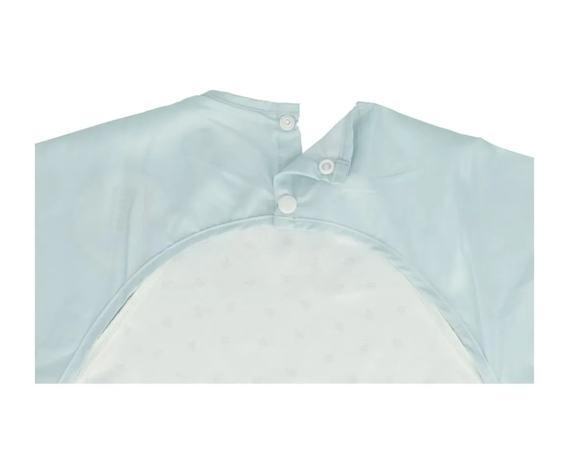 Babero con mangas fabricado en poliéster pero recubierto de una capa que repele el agua y los líquidos.