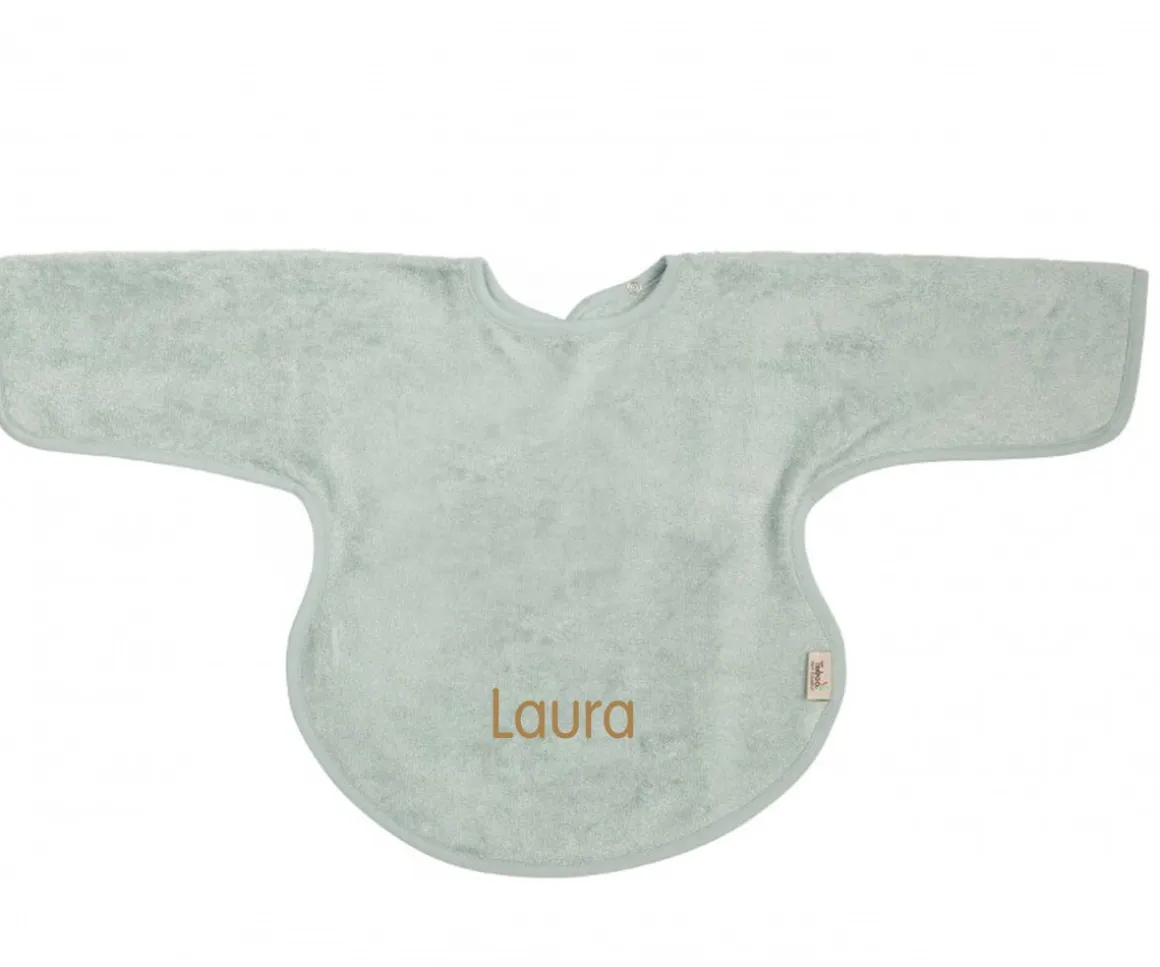 Babero con mangas fabricado en fibra de bambú orgánico con textura muy suave y ajuste de presión en el cuello